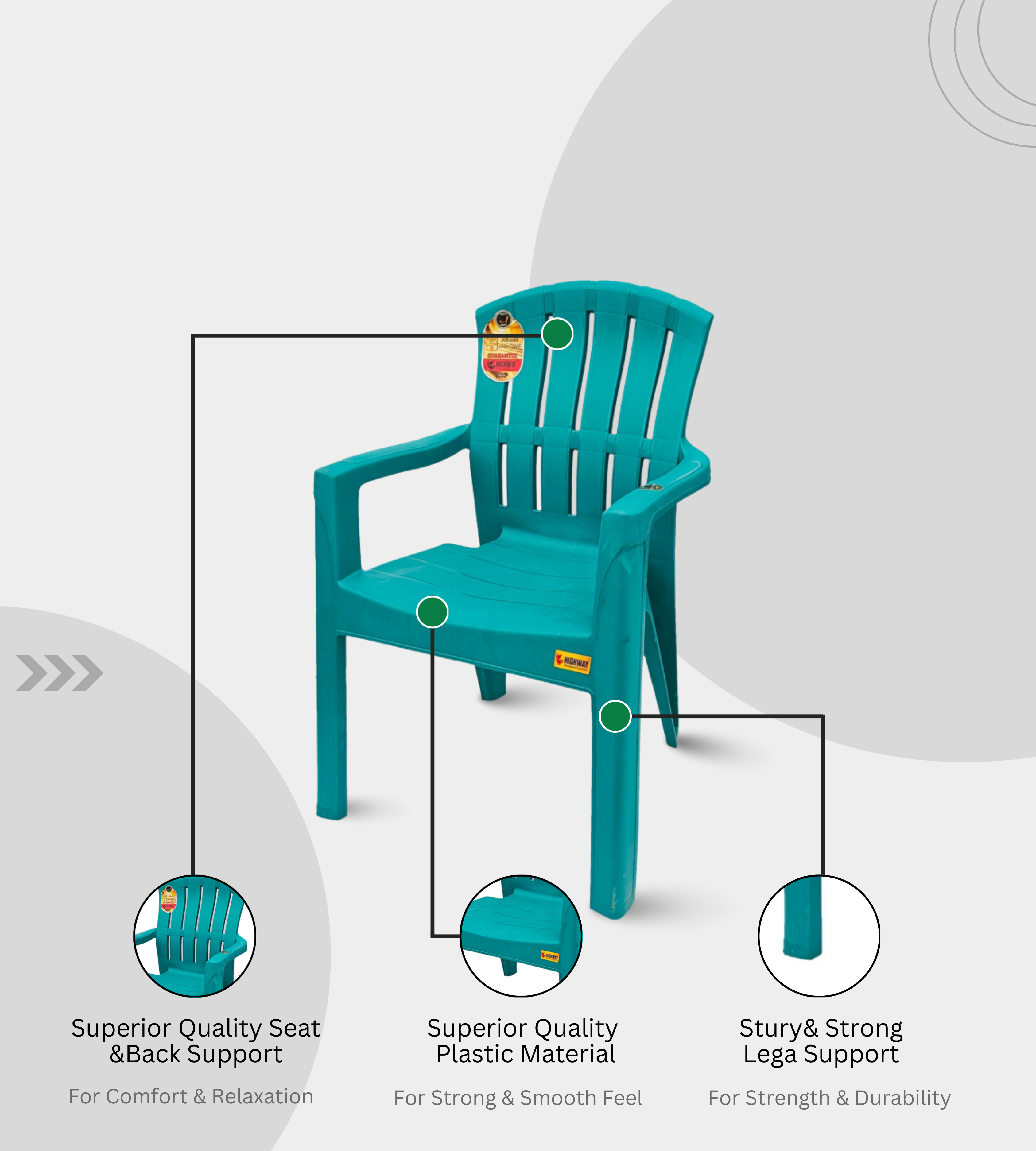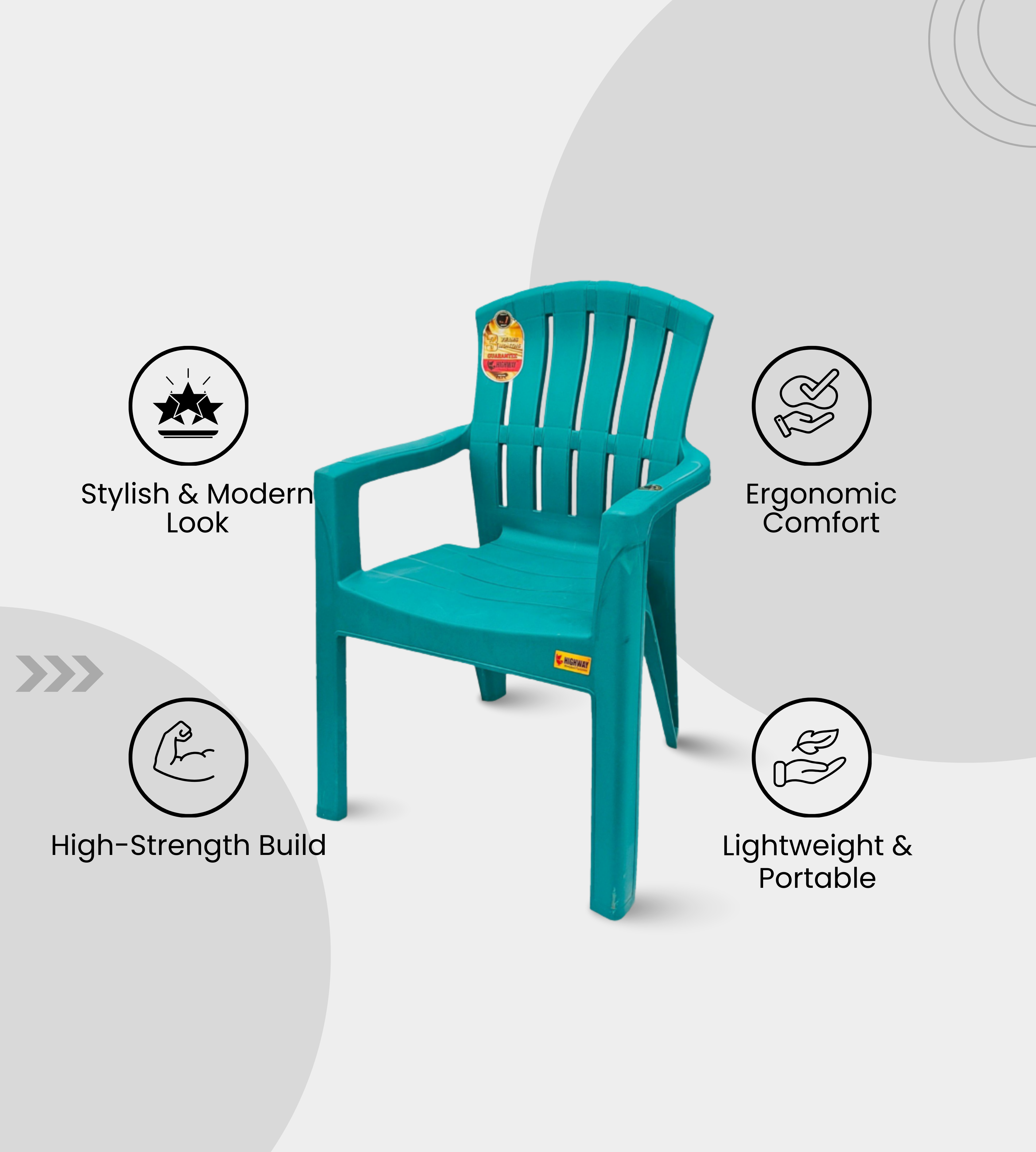 The Highway Matt Finish Armchair is a premium plastic chair designed for comfort, durability, and style. With a total height of 33 inches and supportive 21-inch backrest, it provides comfortable seating for extended use.