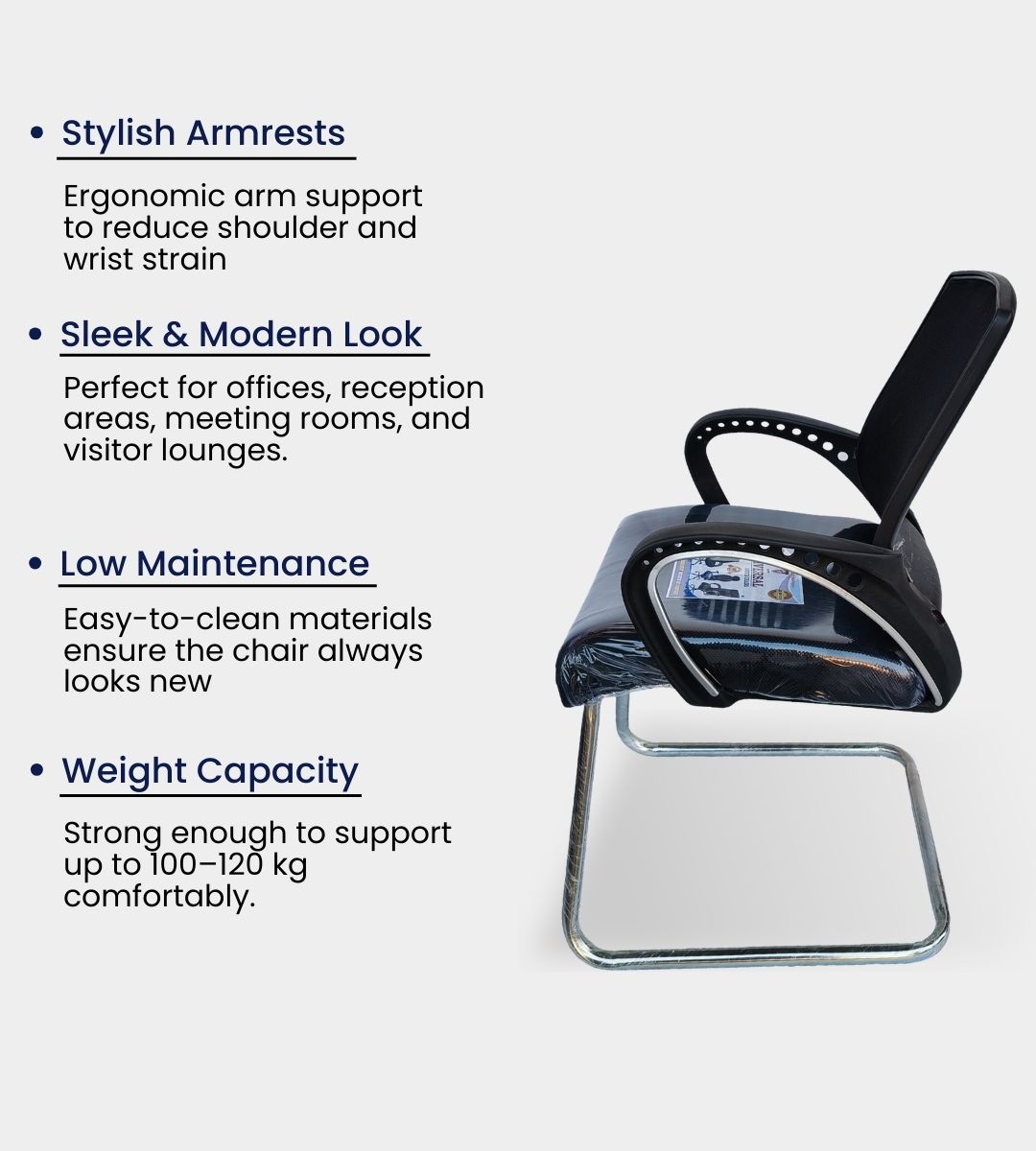 This visitor chair is perfect for reception areas, client meetings, card rooms, staff seating, and institutional use, blending durability, style, and functionality at an affordable price.