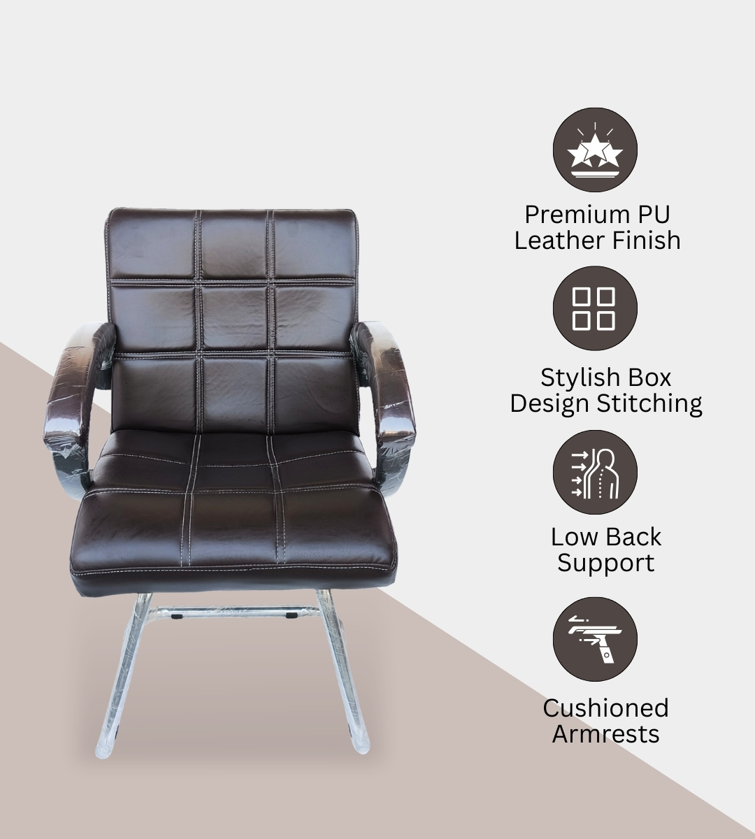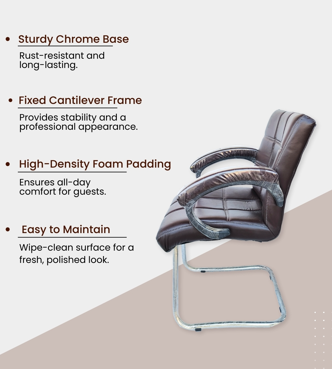 The L PLY Low Back Visitor Chair is designed for comfort and durability, making it perfect for schools, colleges, institutions, staff use, client seating, and card rooms. Crafted with a strong cantilever round pipe chrome frame, the chair offers a supportive rexene seat and backrest. Foam-padded rexene handles add extra comfort, while its lightweight yet sturdy design ensures long-lasting use. it blends style with functionality for every workspace.