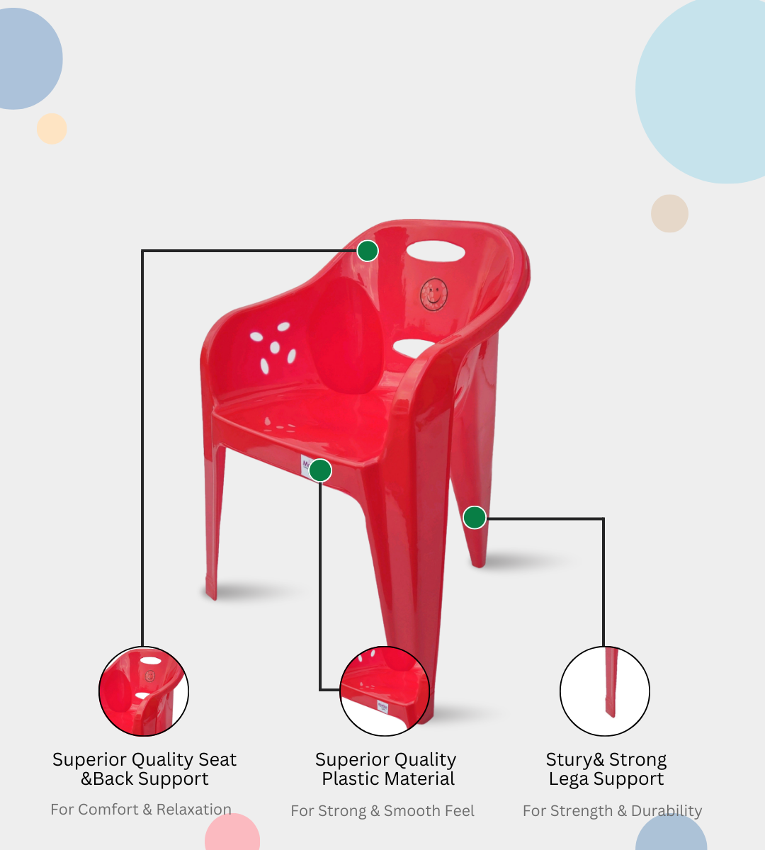 The MARBLE TUB BABY CHAIR is designed to provide safety, comfort, and durability for toddlers and young kids. Made with virgin quality heavy-duty plastic, this chair ensures long-lasting use while being lightweight and easy to move.