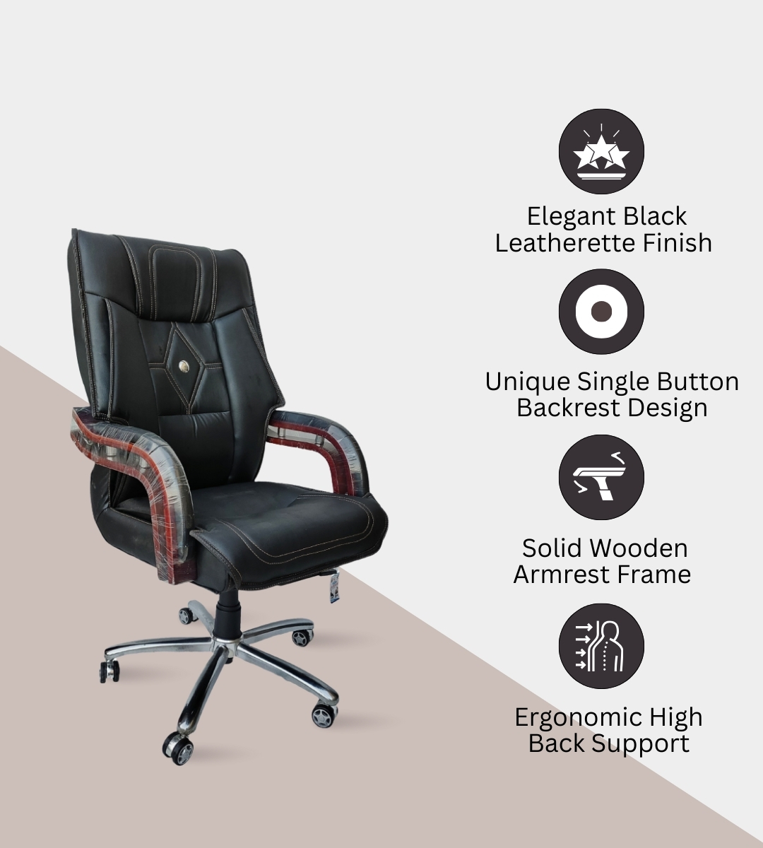 The WOODEN FRAME Executive Chair is designed for luxury, comfort, and authority, making it the perfect addition to premium offices and signature workspaces. Built with a sturdy wooden frame and upholstered with premium rexene, it ensures both style and durability.