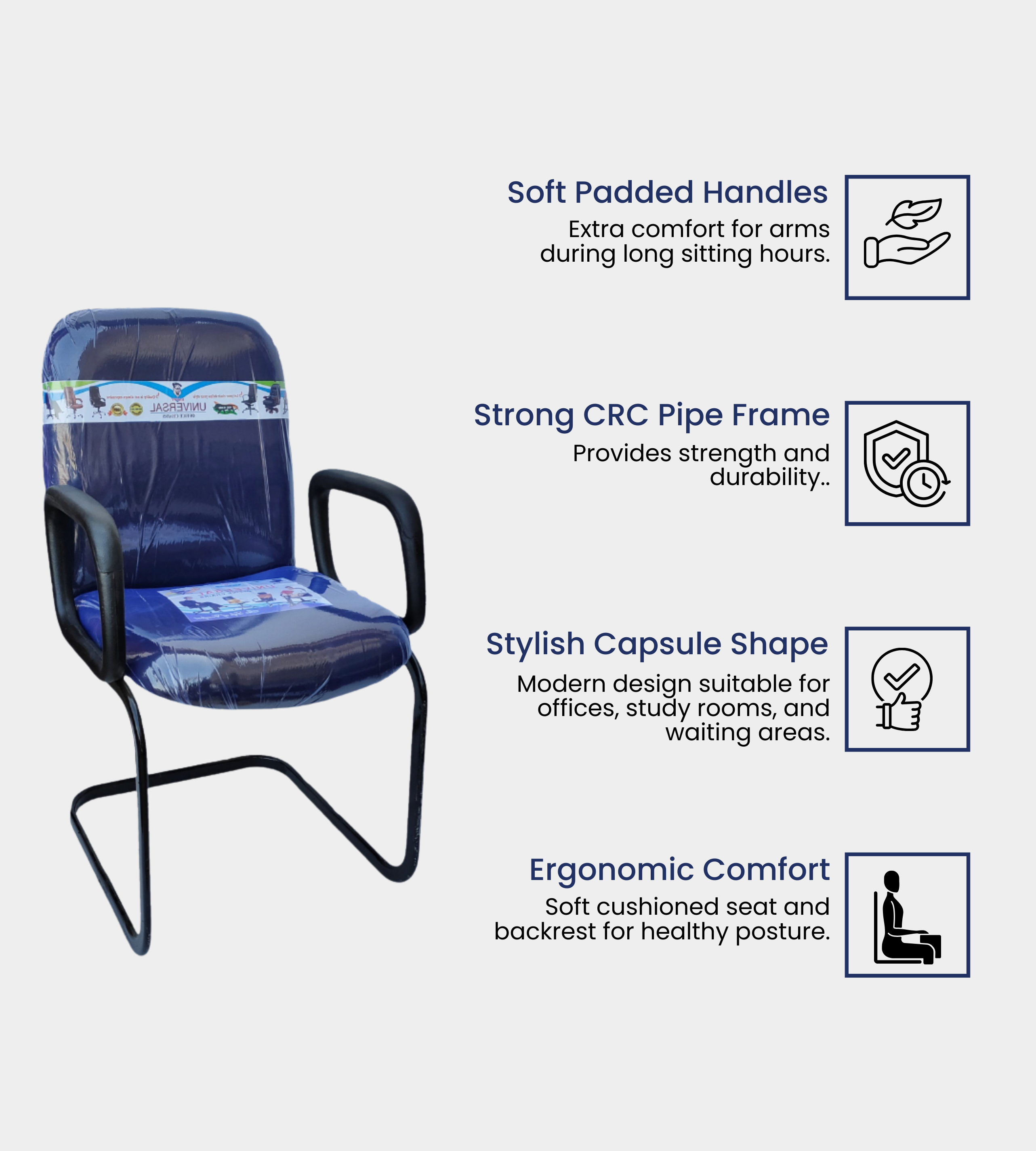 The CAPSULE (SOFT HANDLES) Chair is a versatile and ergonomic seating solution designed for institutions, offices, and social spaces. Built with a CRC pipe capsule frame, it ensures durability and stability.