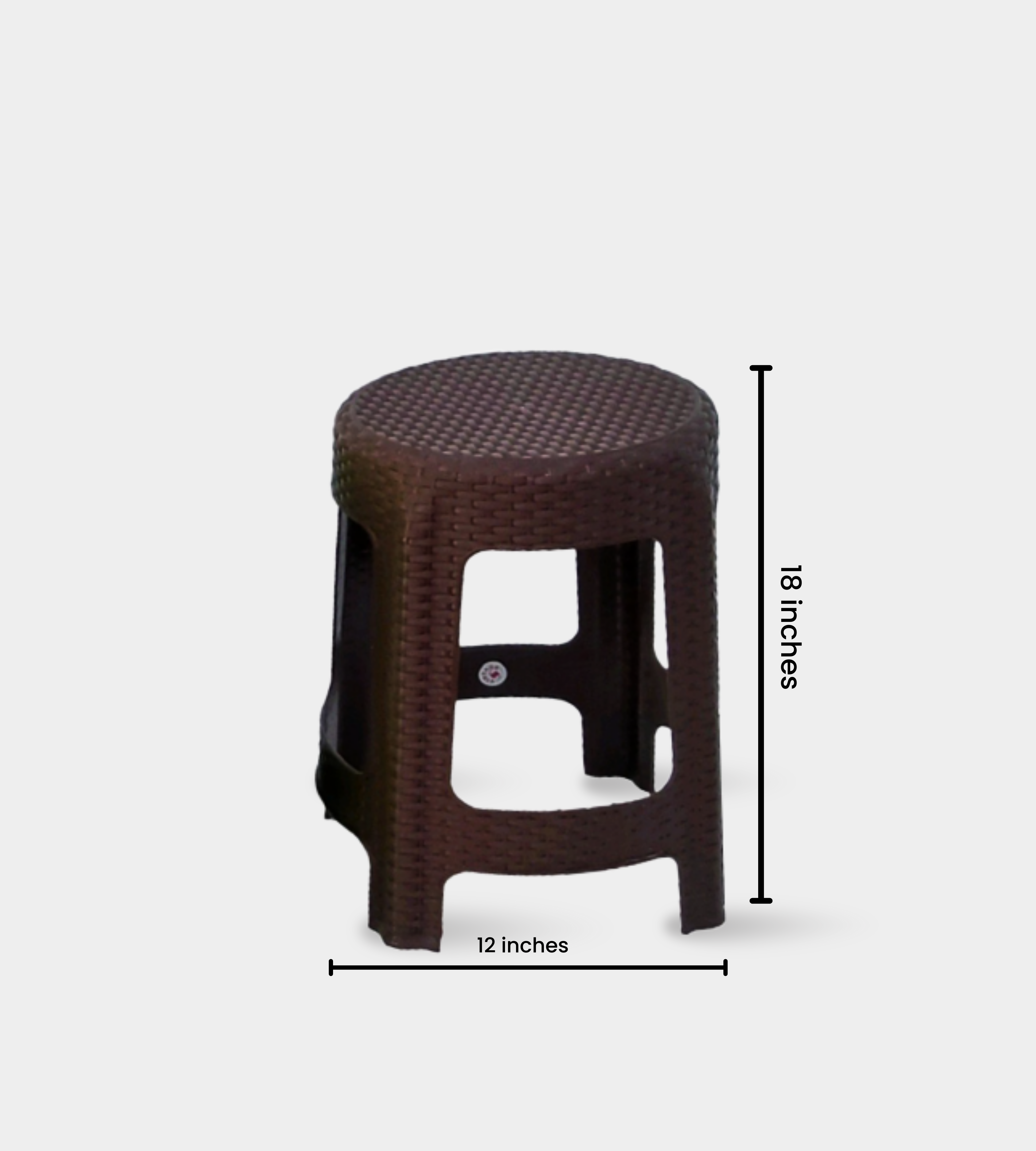 The Sharda Net Stool is a durable, round plastic stool designed for kids and multipurpose seating needs. With a total height of 18 inches and a 12-inch diameter seat, it offers comfort and stability while being lightweight and easy to carry.