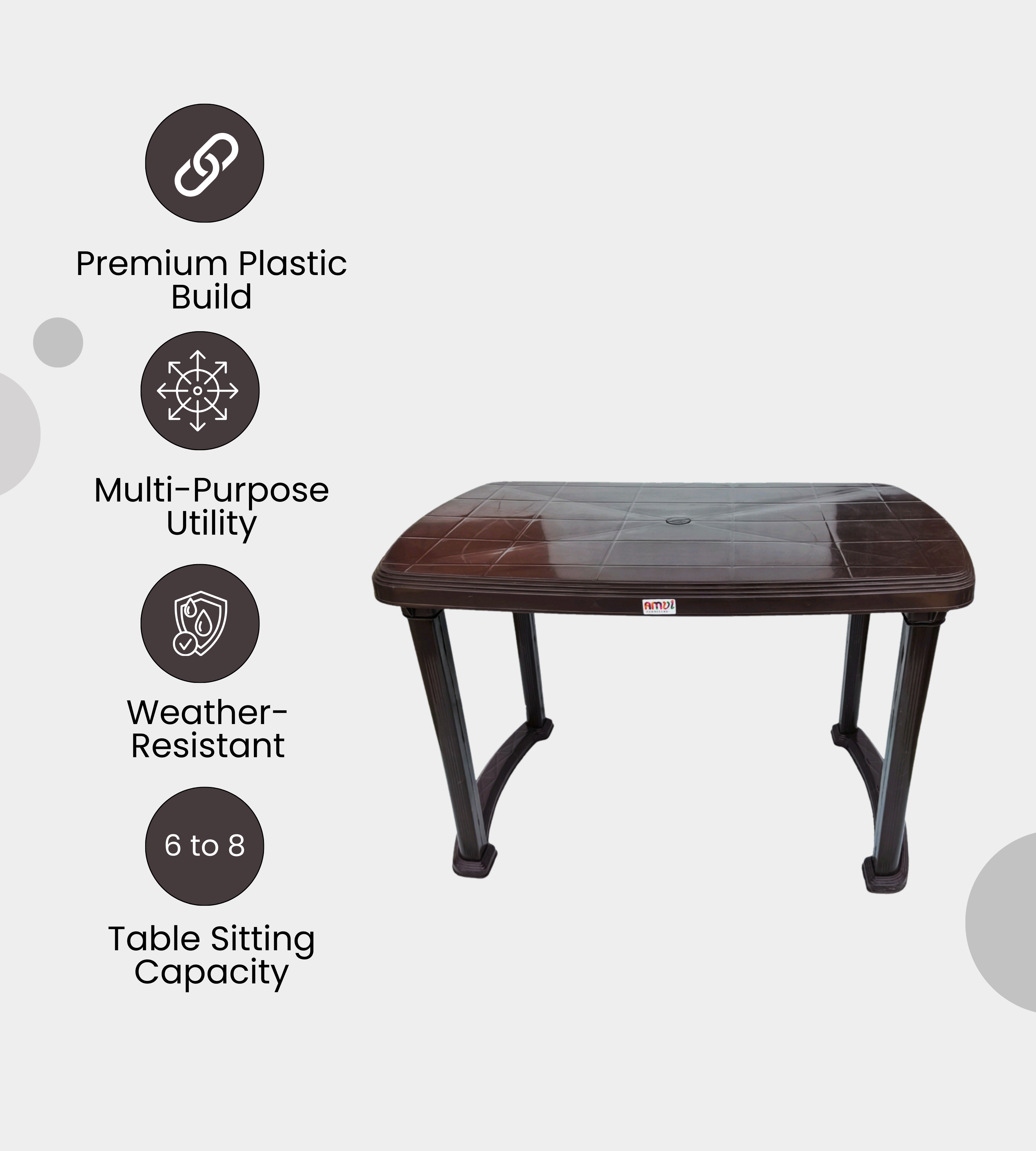 The Dining Table is a durable and foldable plastic table designed for both home and commercial dining needs. With a 31-inch height and a spacious 48 × 30-inch top, it comfortably accommodates 6 to 8 people, making it perfect for families and groups.
