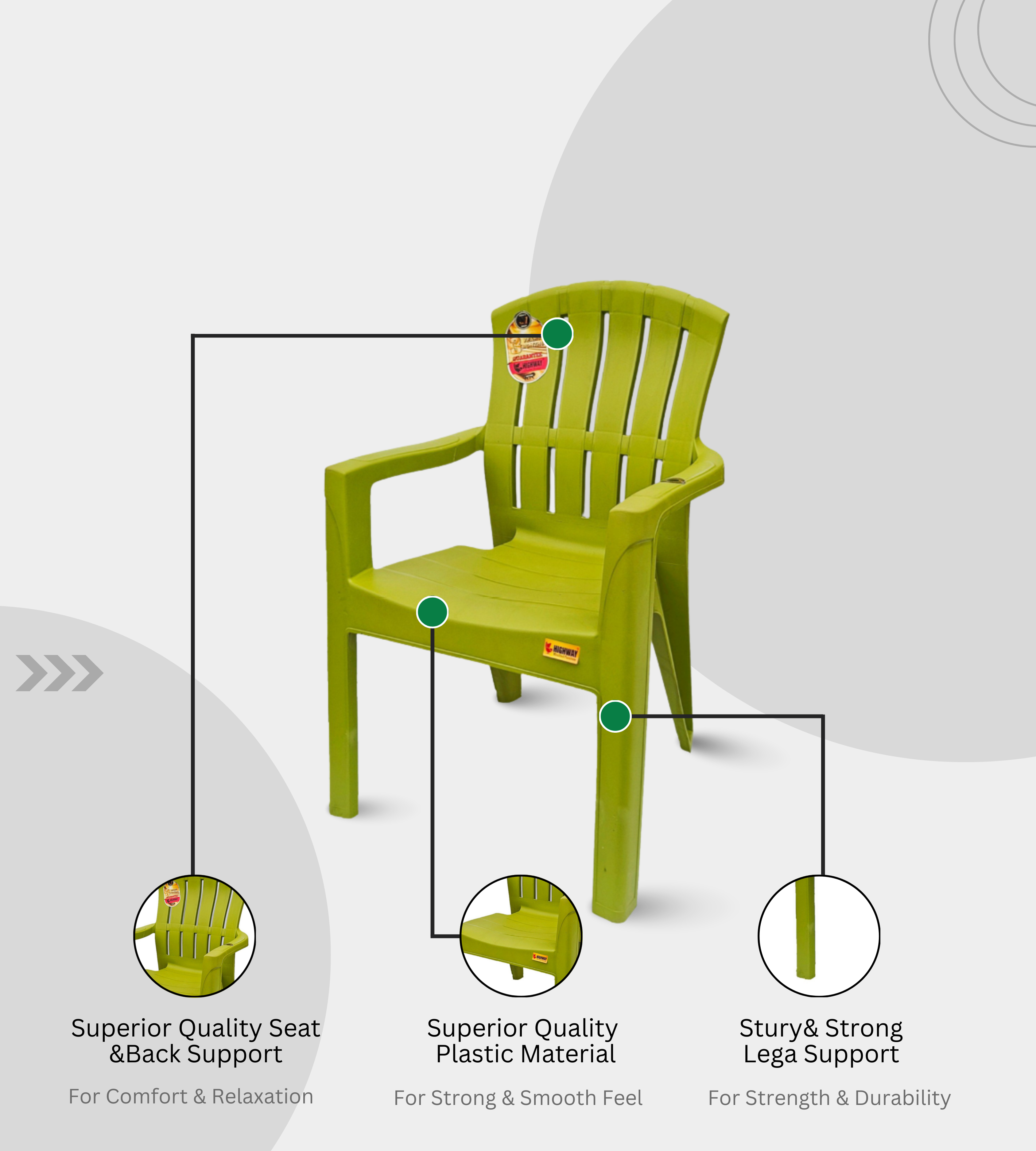 The Highway Matt Finish Armchair is a premium-quality plastic chair designed for comfort, durability, and style. Measuring 33 inches in height with a 21-inch supportive backrest, it provides ergonomic seating suitable for daily use at home, institutions, or commercial spaces.