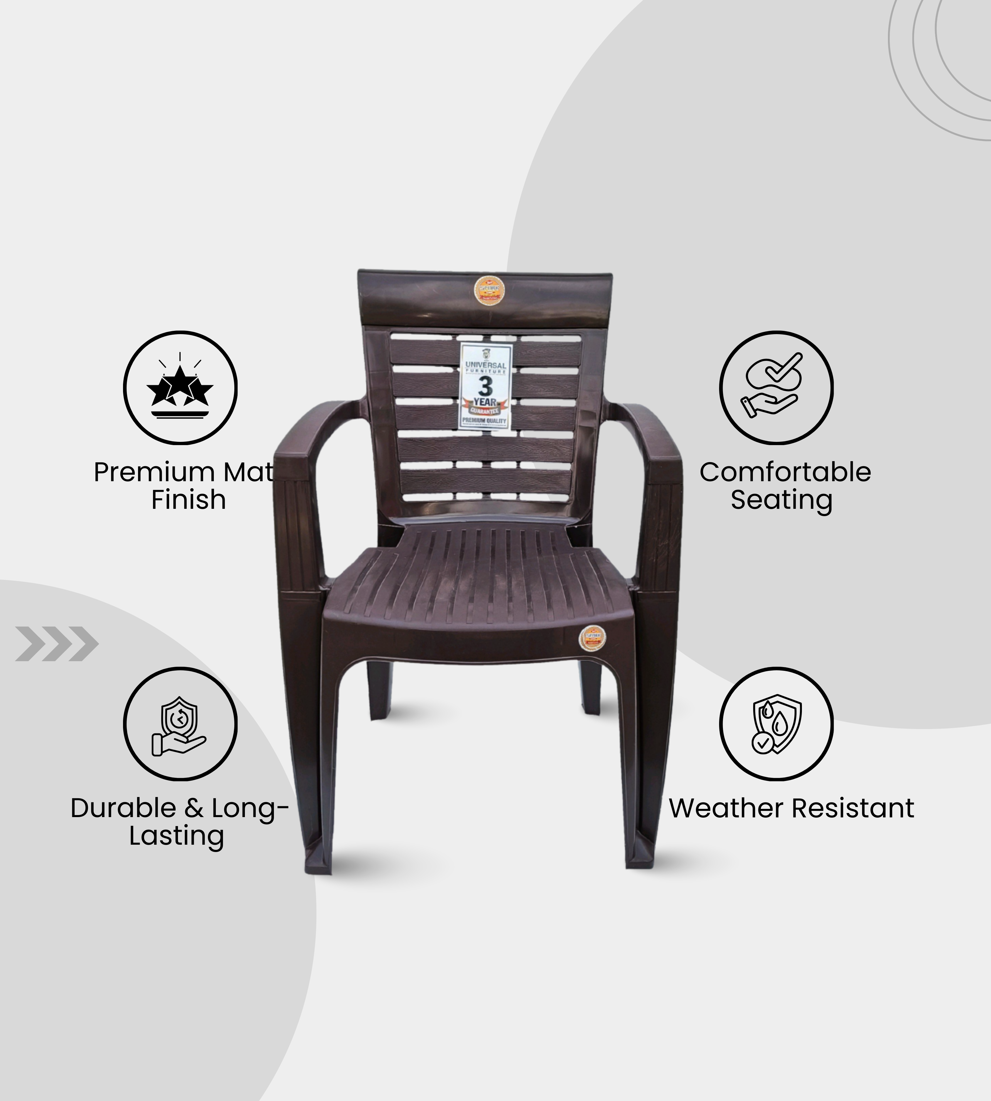 The Spark Matt Finish Chair is an elegant and durable armchair made from heavy-duty plastic, available in multiple color. Standing 34 inches tall with an 18-inch seat height, it offers both comfort and style.