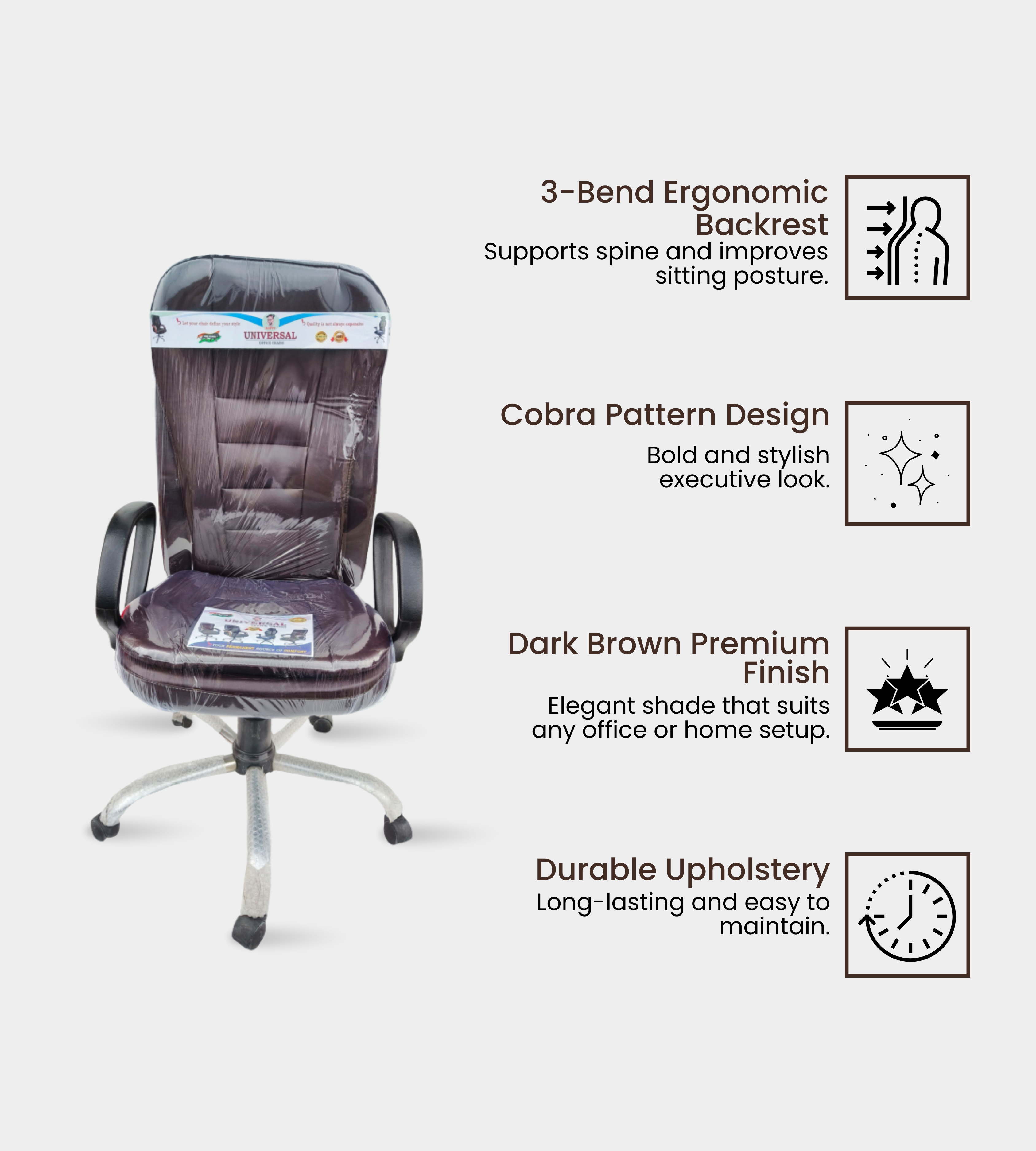 The 3 Bend Cobra chair is ideal for bosses, executives, staff, and professional offices, offering a balance of luxury and functionality at an affordable price point.