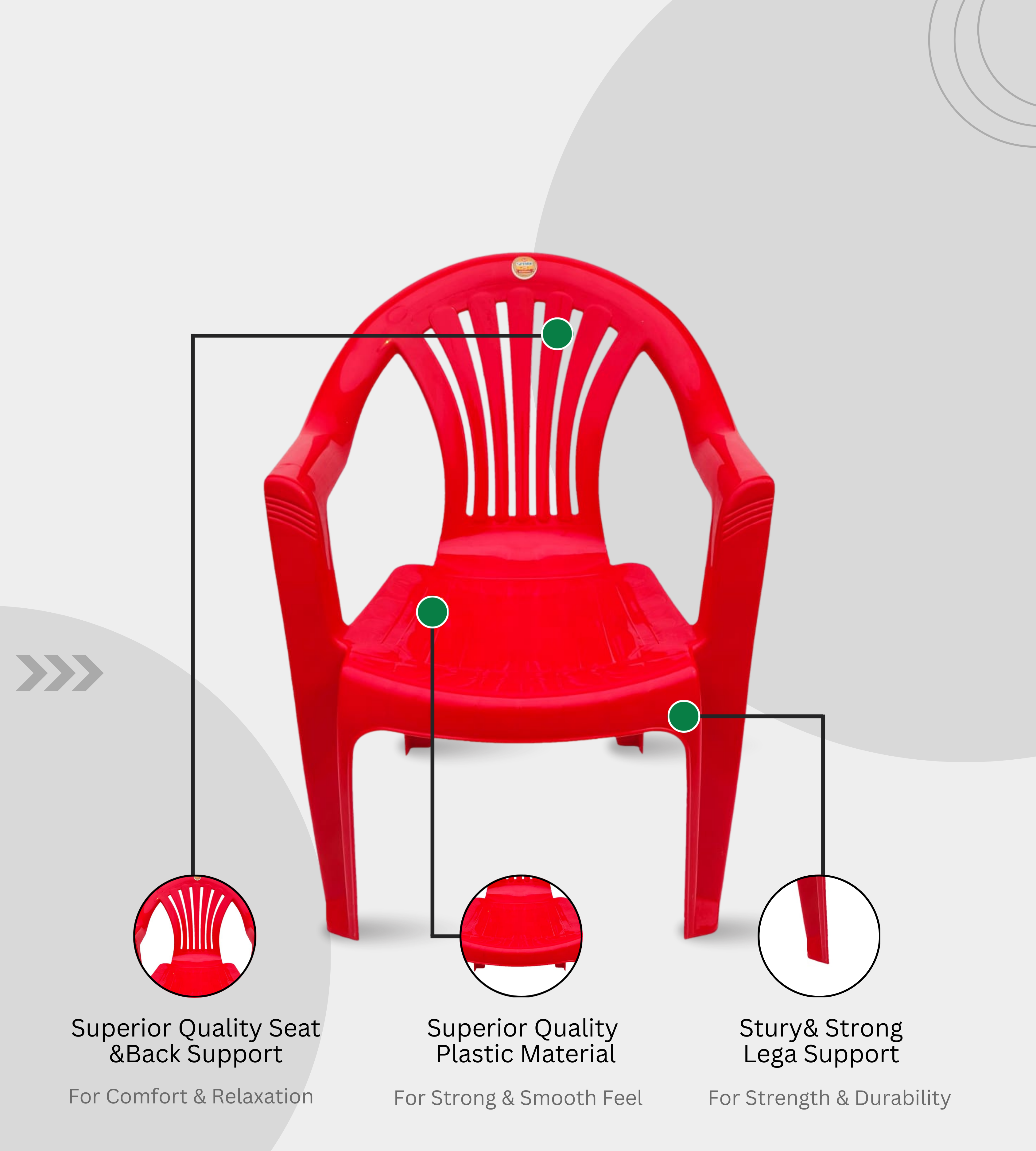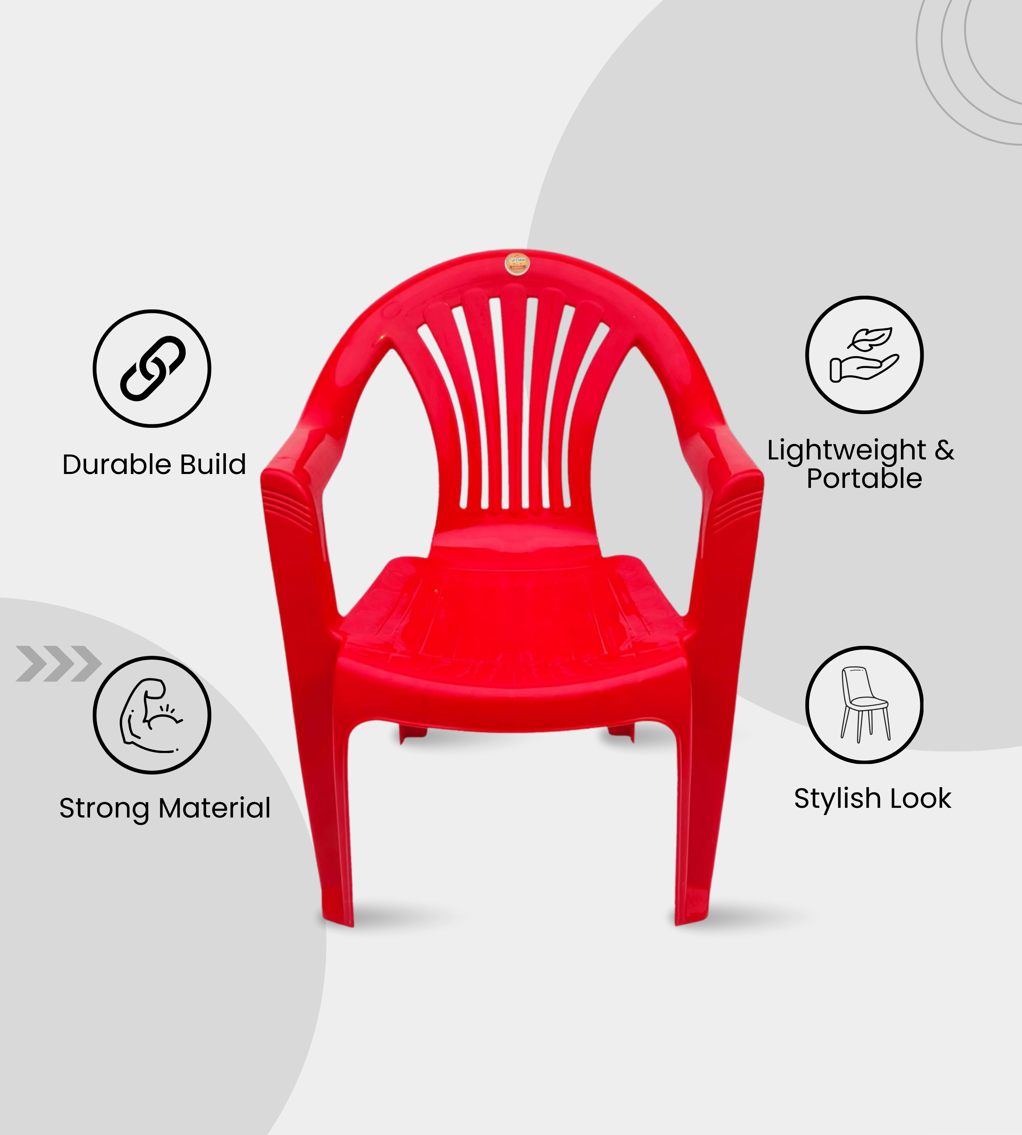 Its ergonomic design with arm support provides comfort for prolonged sitting, making it suitable for homes, restaurants, offices, waiting areas, and event setups. The wide seat and sturdy backrest enhance posture support, and its lightweight design allows easy mobility and stacking for space efficiency.
