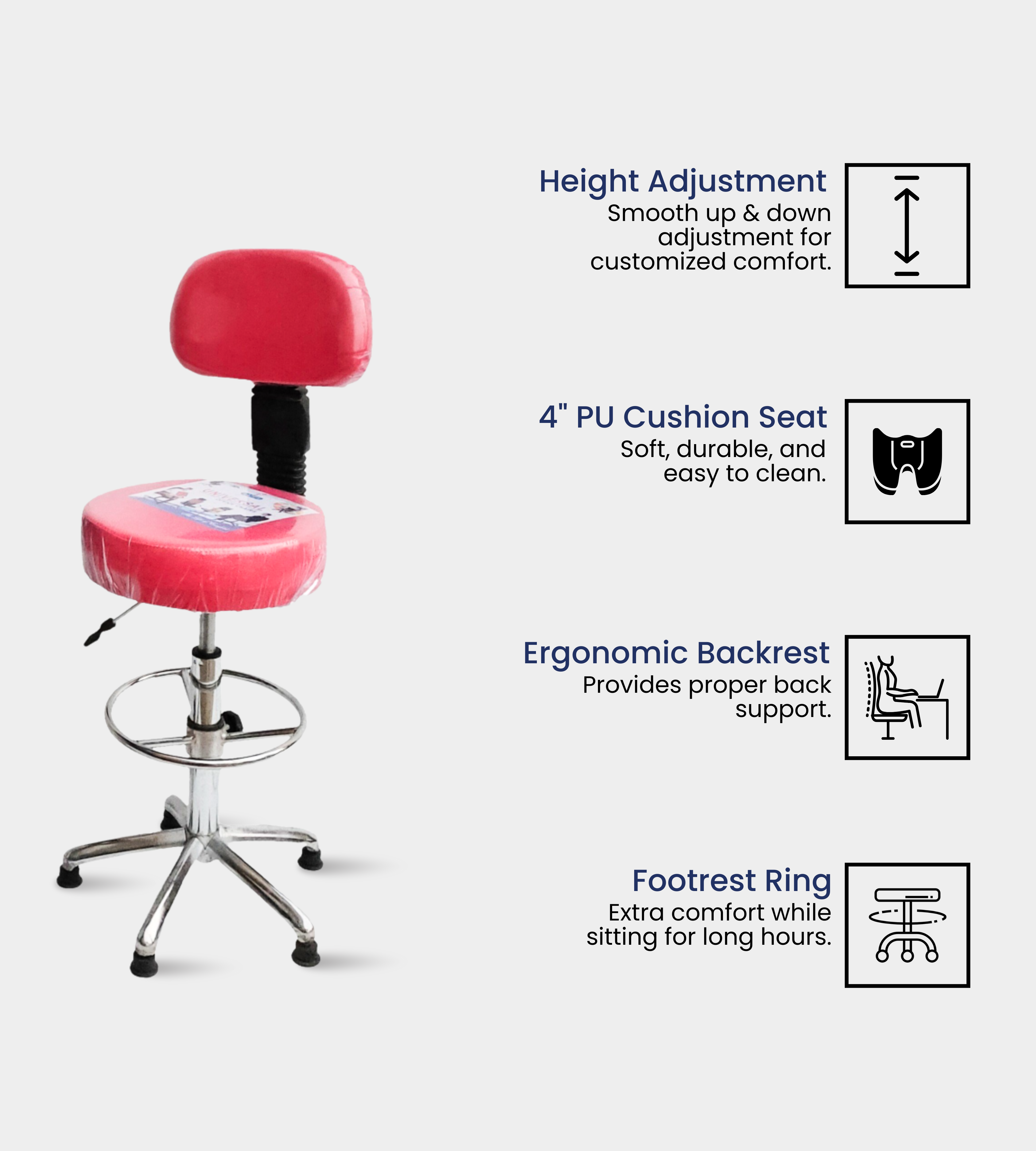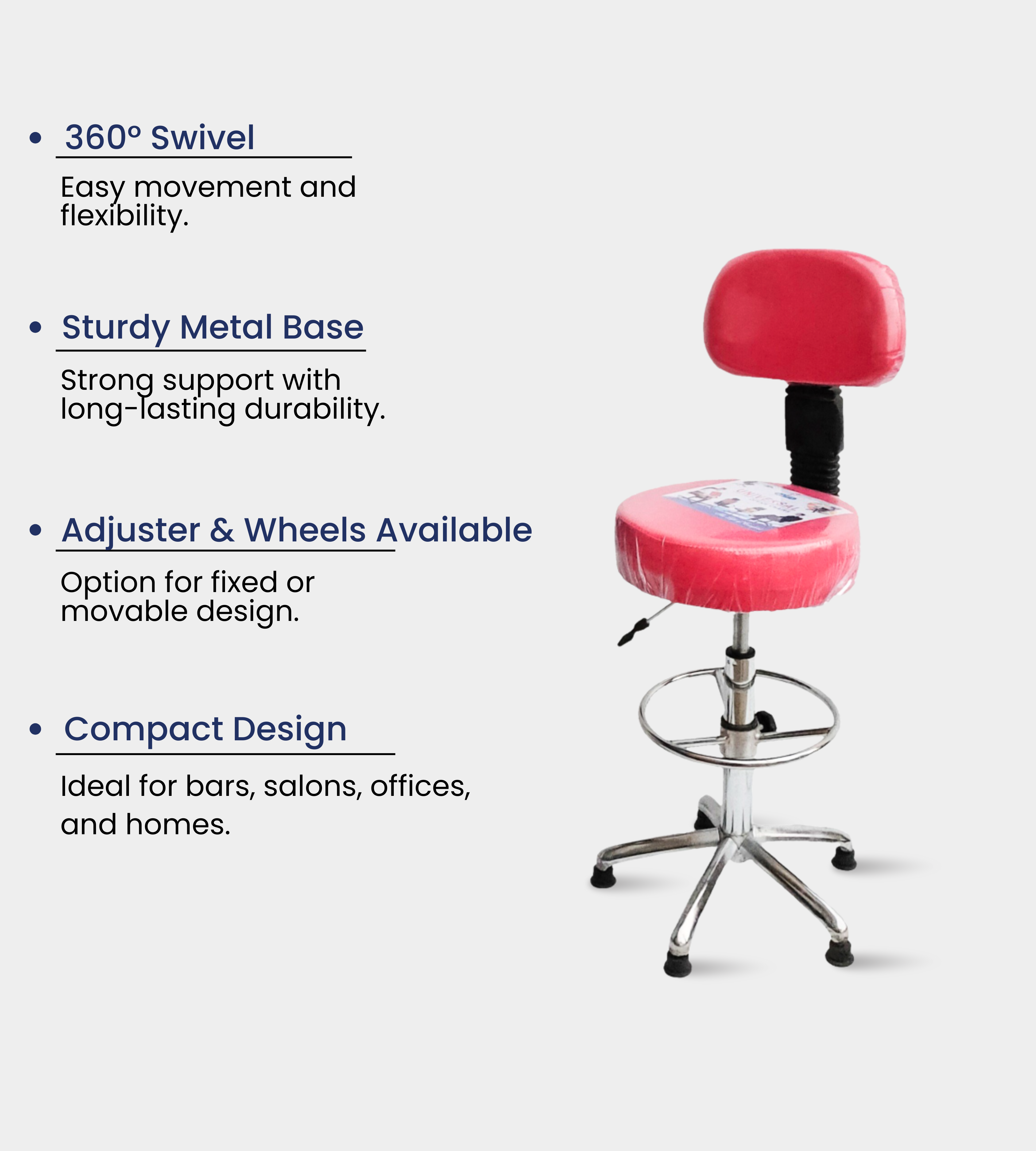 The Bar Stool (Without Arms) is a modern and versatile seating solution designed for both commercial and residential spaces. With its steel chrome base and rexene cushioning, it delivers comfort, durability, and style in one package.