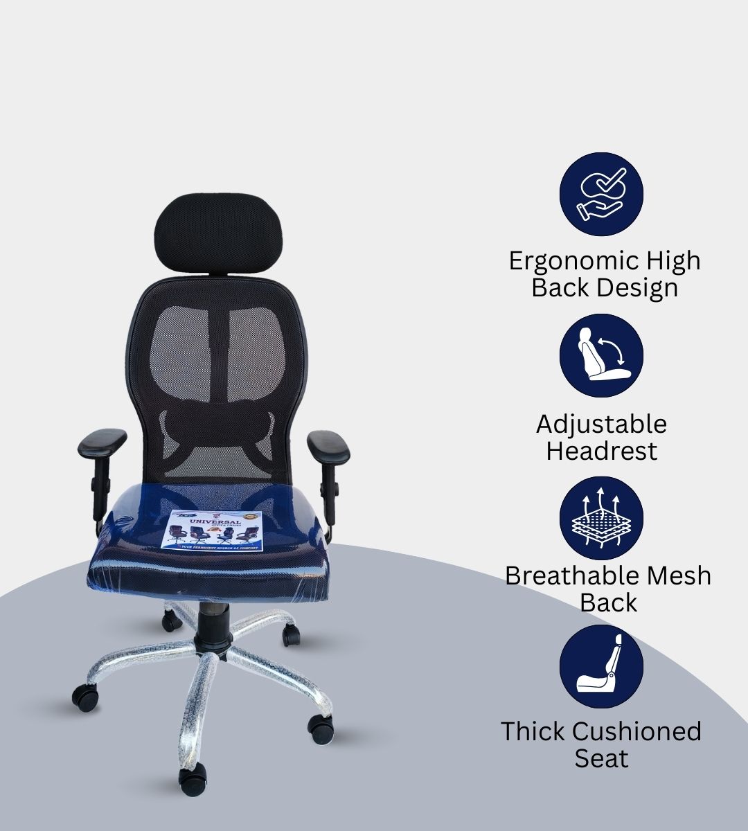 The NET MARUTI HIGH BACK chair is part of the premium executive collection, designed for bosses, directors, and signature office setups. Its tall backrest crafted with heavy mesh fabric ensures superior lumbar and upper back support, promoting comfort during long working hours.