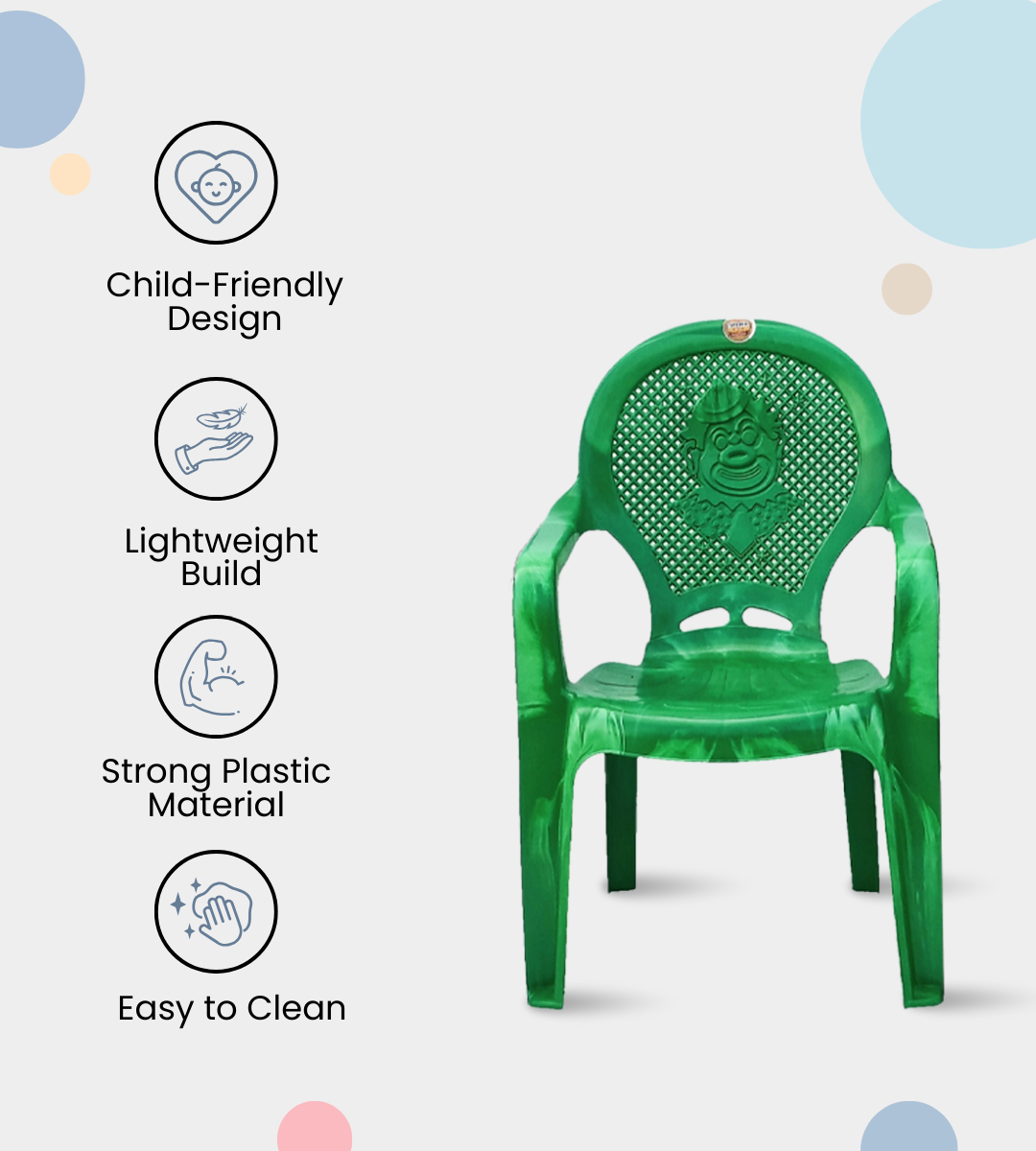 Affordable spark tub baby chair with arms, made of durable plastic. Safe, colorful, and lightweight seating solution for homes, schools, and kids’ activity spaces.