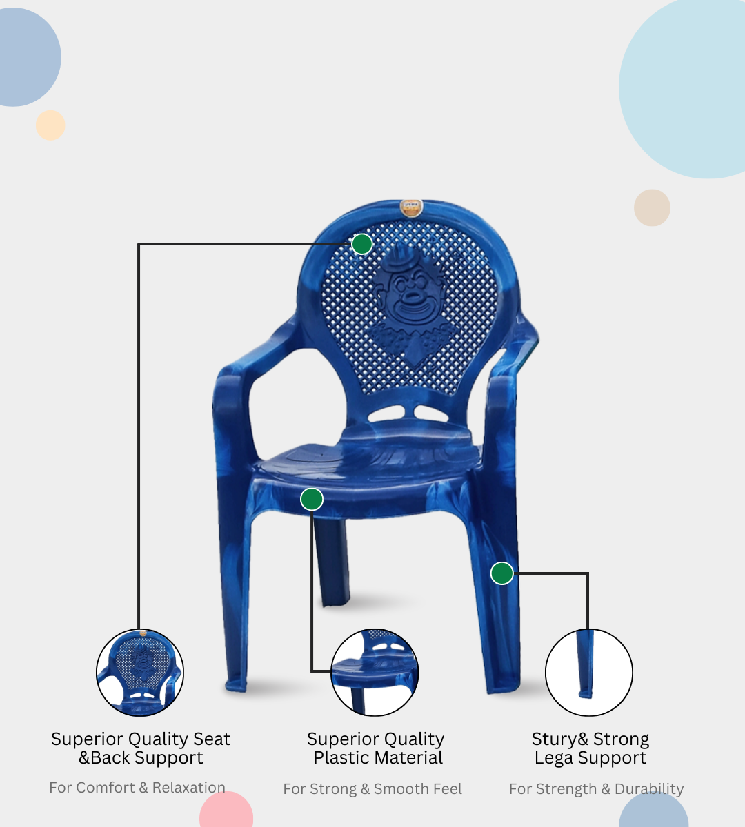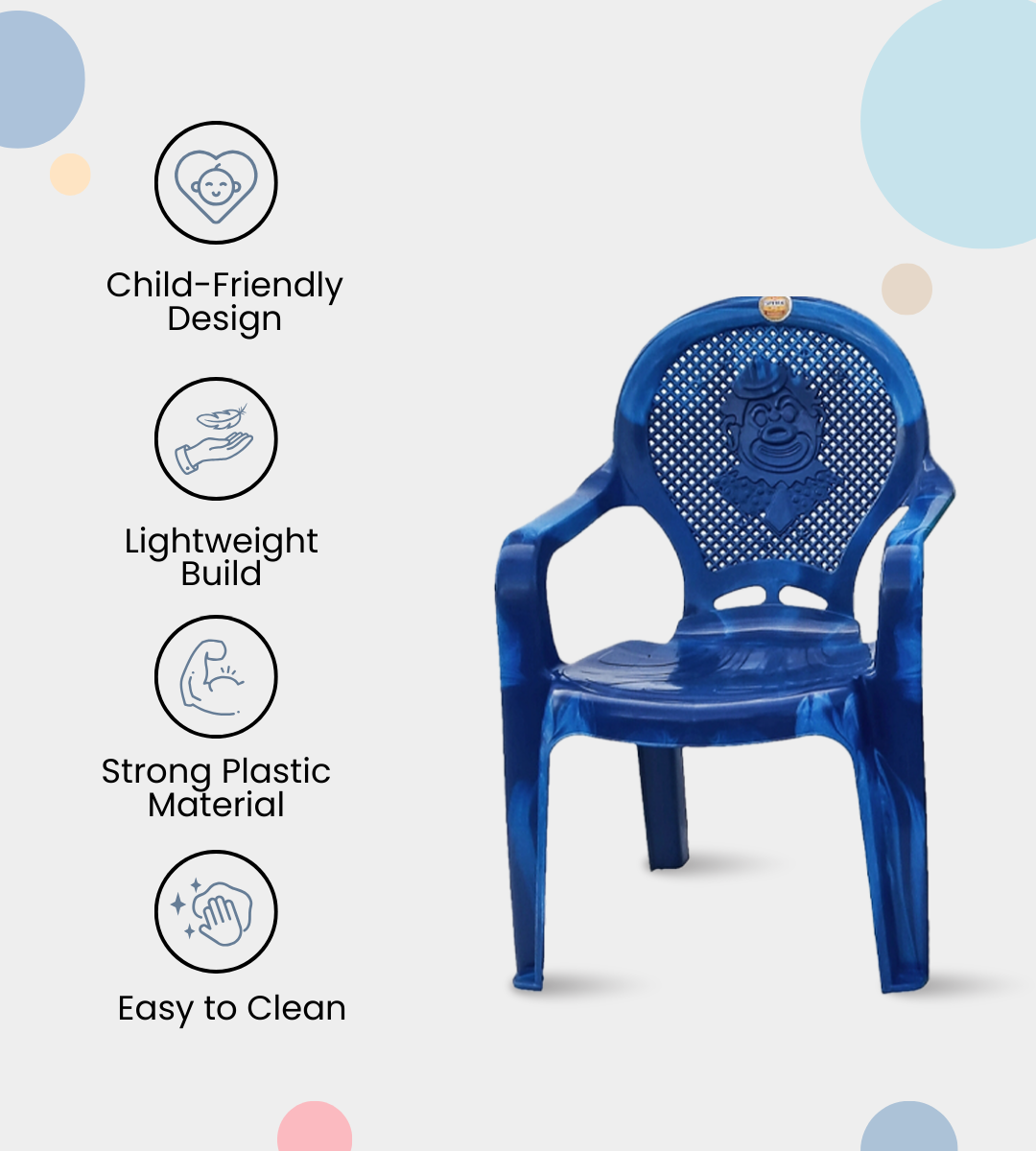 The SPARK TUB BABY CHAIR is a durable, lightweight, and child-friendly chair designed to provide safe seating for kids. Crafted from heavy-duty plastic, it ensures strength and long-lasting performance. With armrests for added comfort and a seat height of 12 inches, it is perfect for play schools, kindergartens, daycare centers, and homes. it brings vibrancy to any kids’ area. Compact, portable, and easy to maintain, the Spark Tub Baby Chair is an affordable and practical choice for both personal and institutional use.