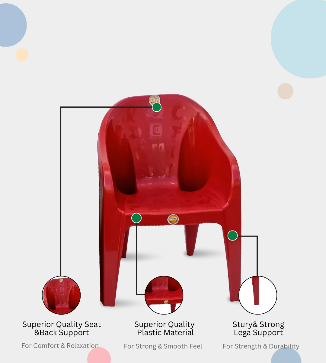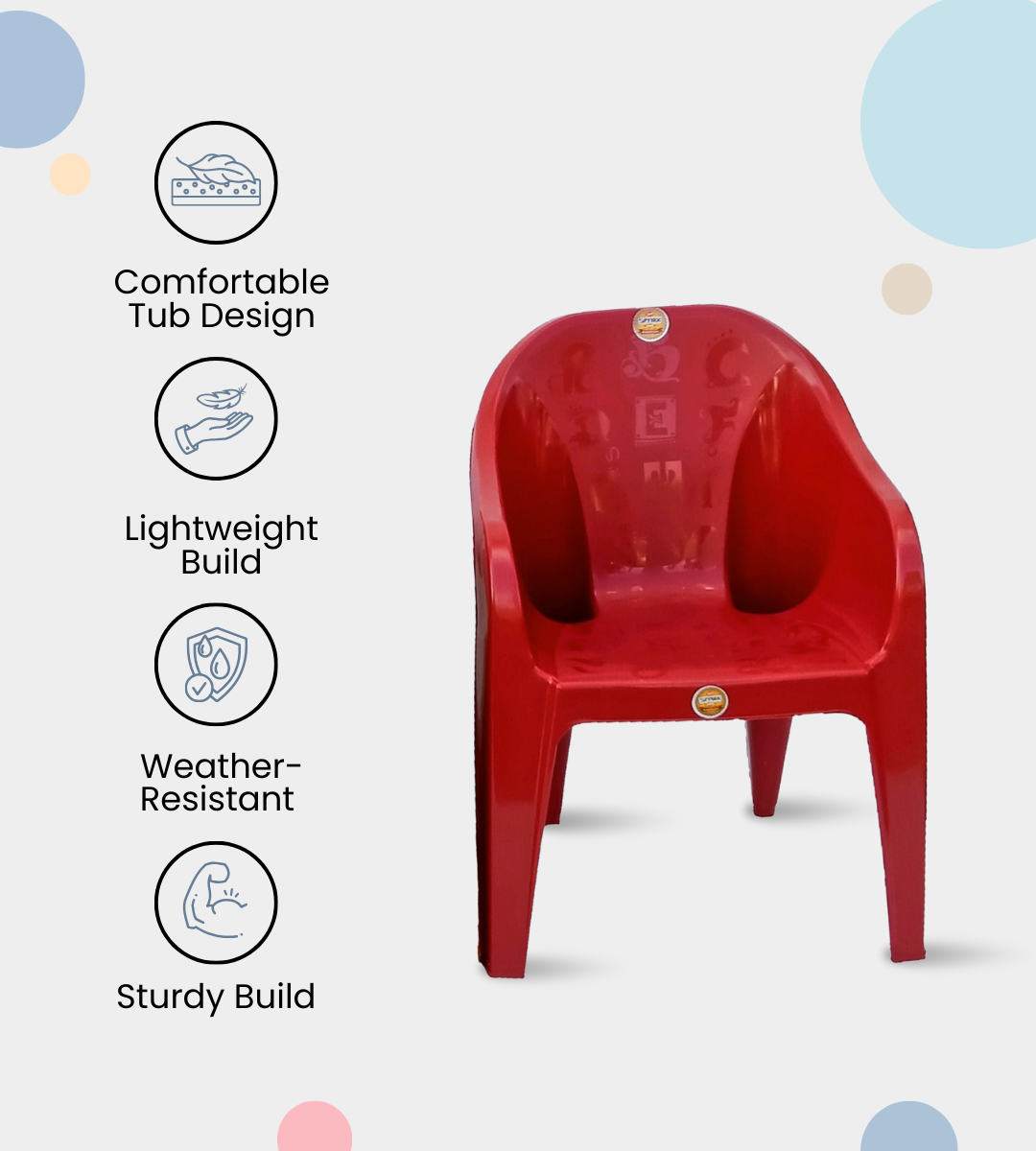 The SPARK TUB BABY CHAIR is a safe, sturdy, and colorful seating solution designed for toddlers and young children. Made from heavy-duty durable plastic, it offers excellent strength and comfort with its tub-style design and supportive arms. With a seat height of 12 inches and a backrest of 11 inches, it ensures ergonomic seating for kids during study, play, or meals. this chair adds vibrancy to any environment. Perfect for homes, pre-schools, daycare centers, and activity spaces, it is also backed by a 1-year warranty, making it a reliable and affordable choice for children’s seating needs.