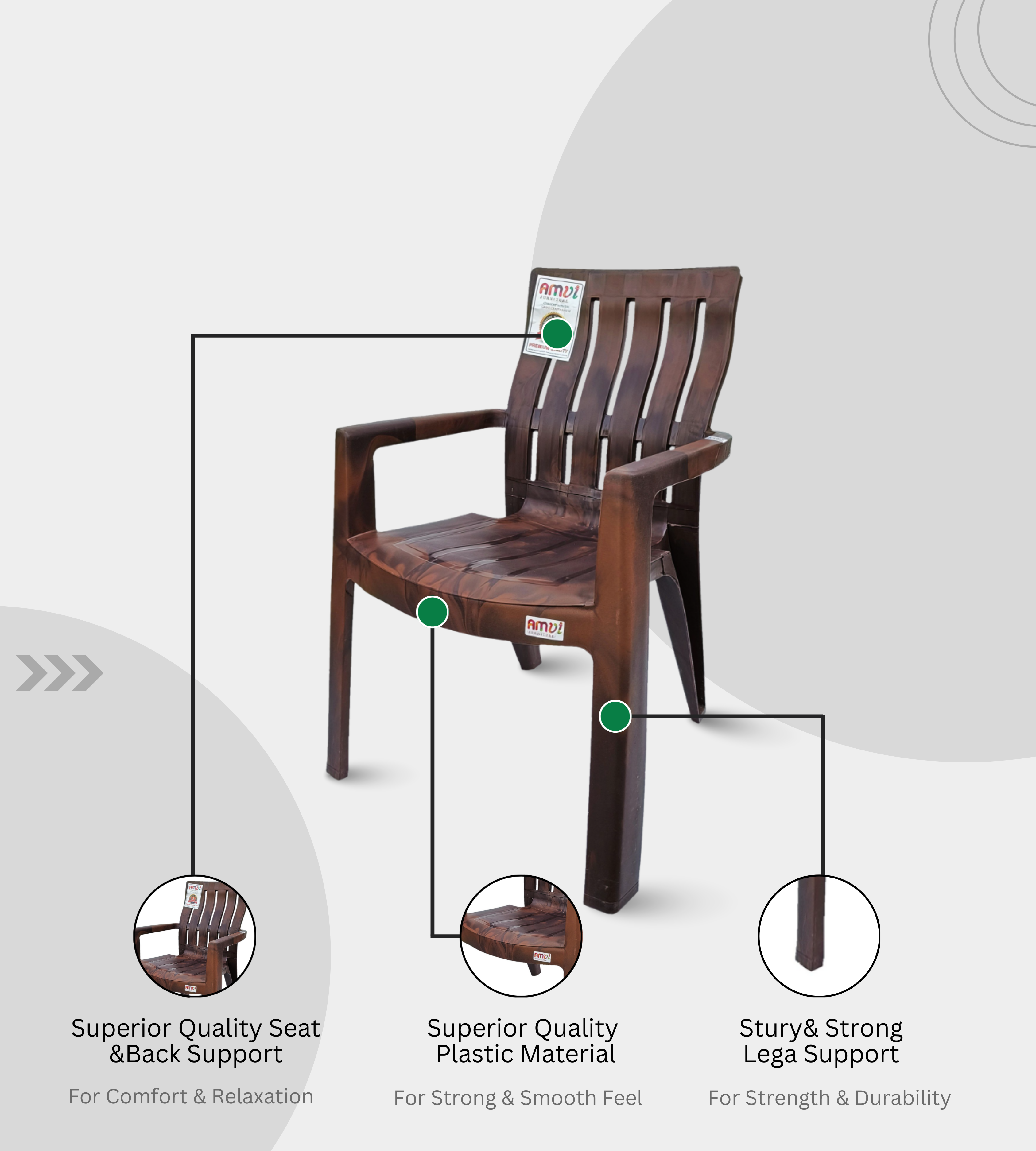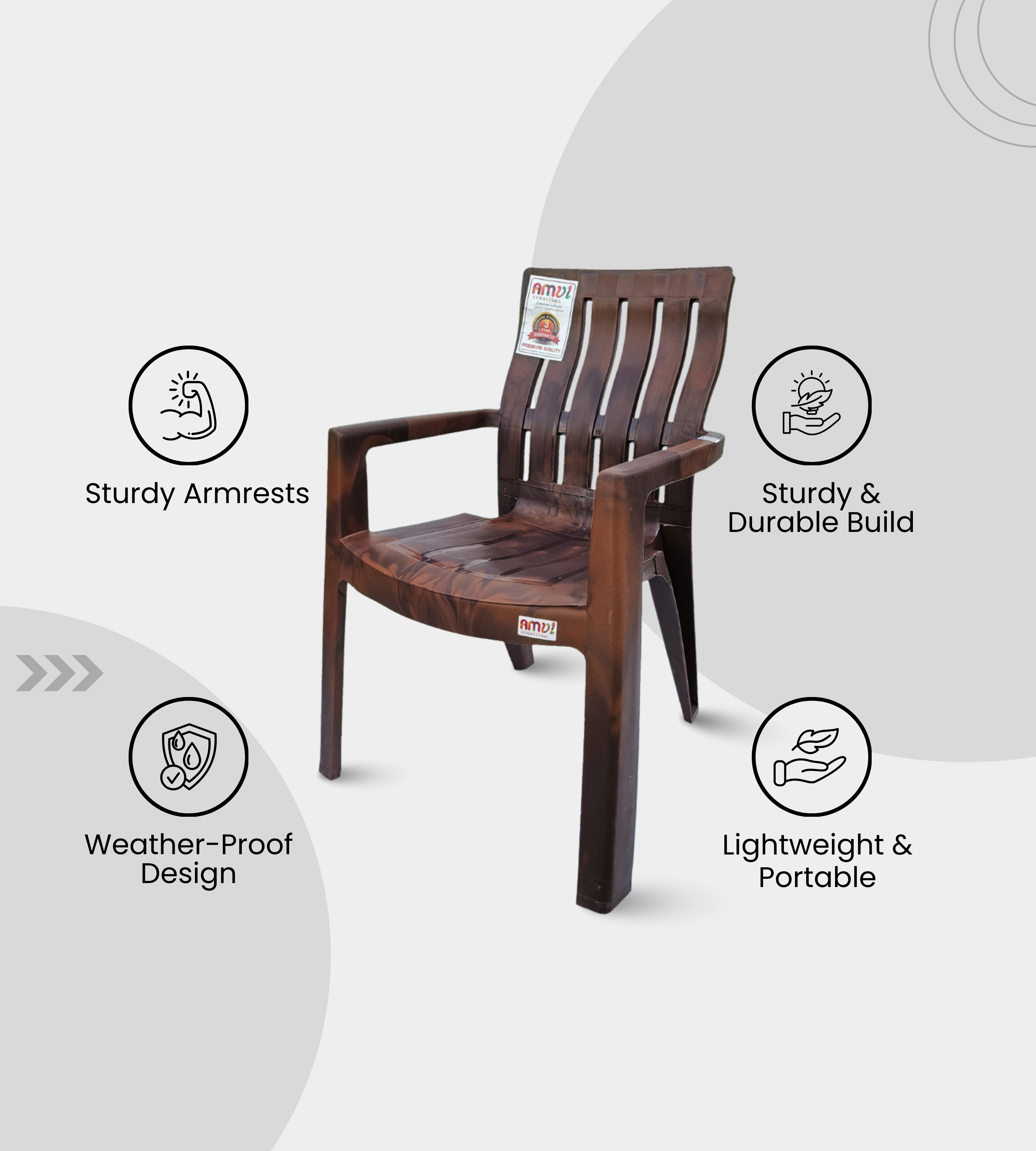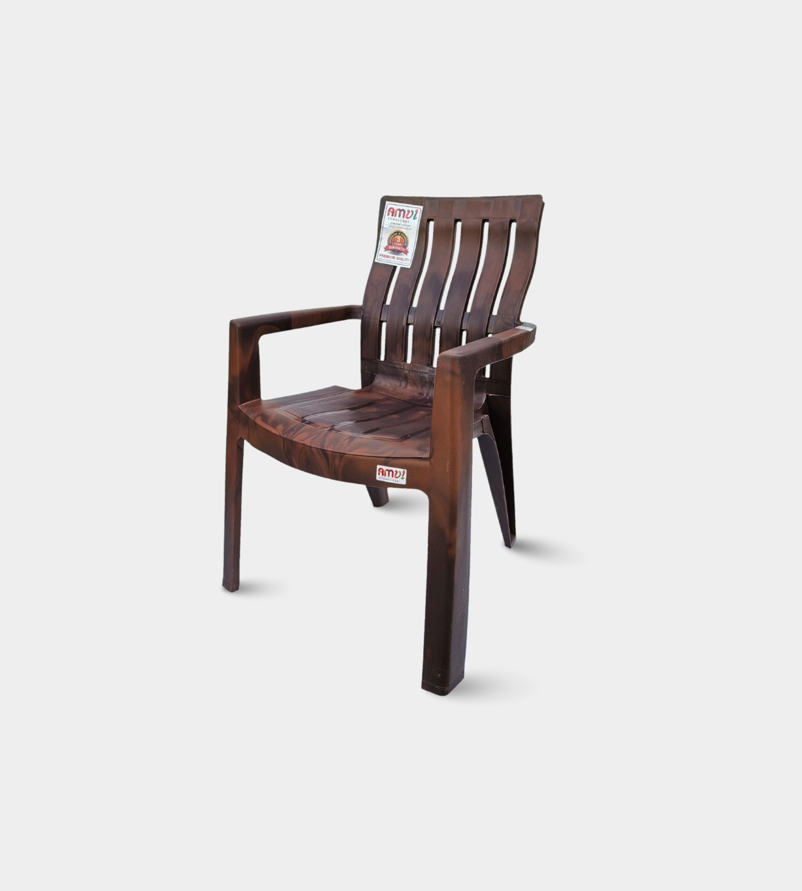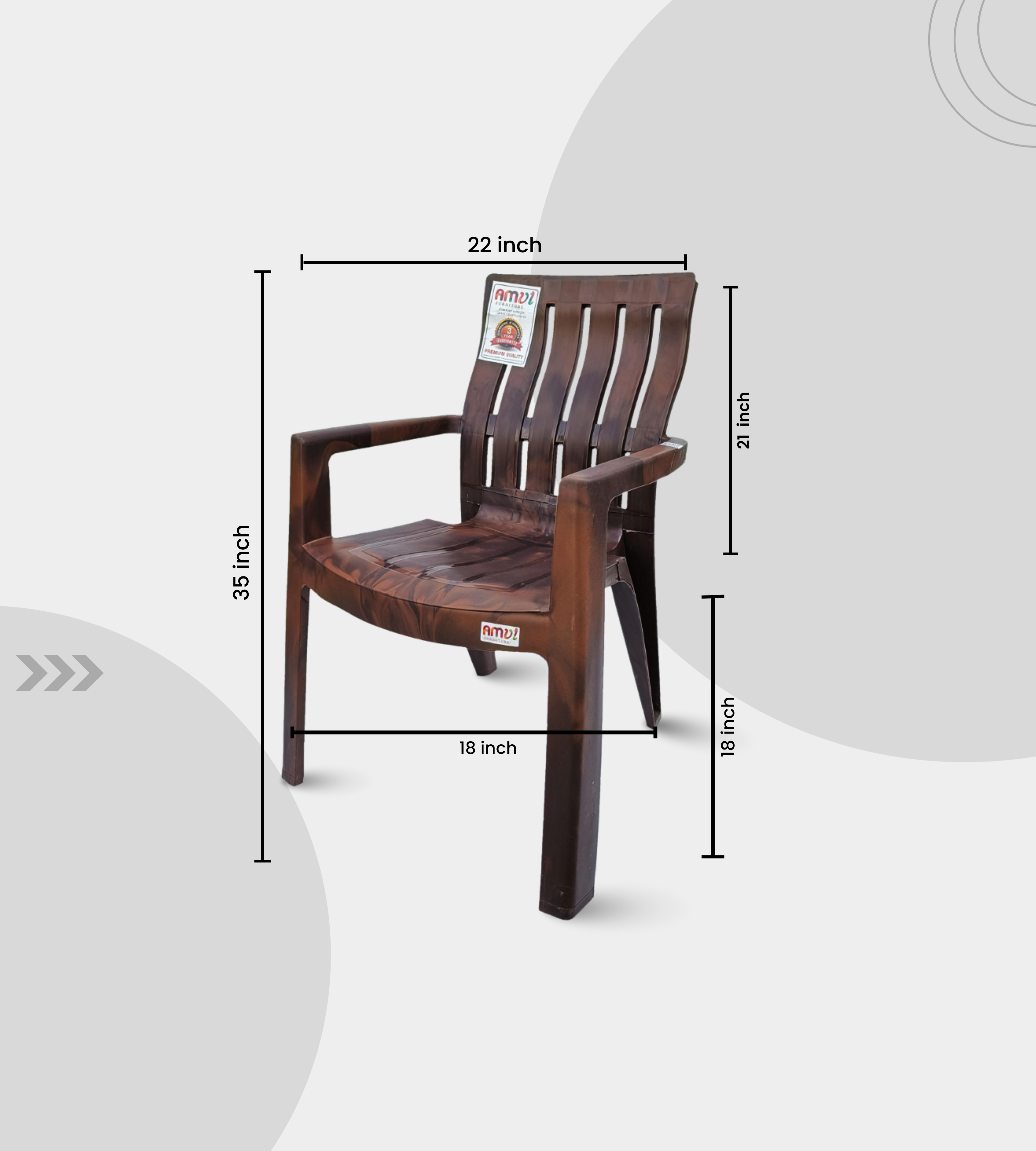 The KINGDOM (AMUL) chair is a heavy-duty plastic armchair designed for strength, durability, and style. Finished in an elegant feather brown colour, it enhances both modern and traditional interiors. With a seat height of 18 inches and a 21-inch backrest, it provides excellent comfort and posture support.