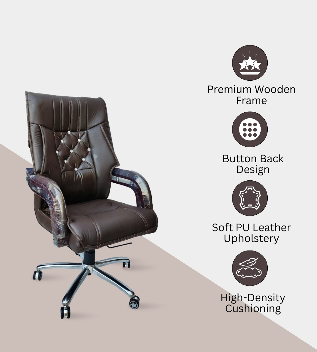 this chair combines traditional elegance with modern design, making it an ideal choice for executives, leaders, and premium institutions.