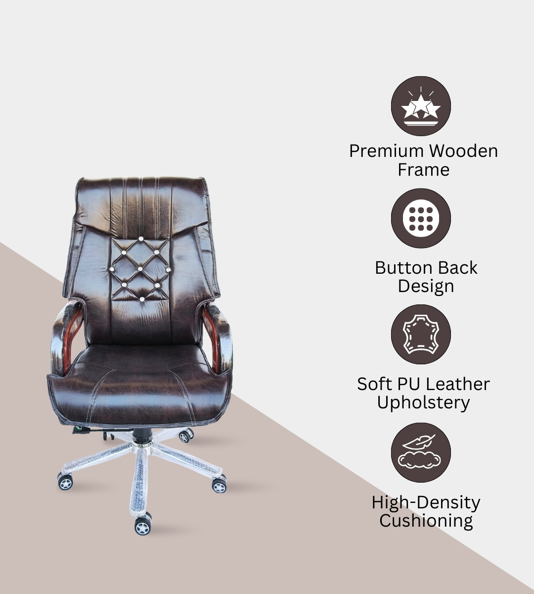 this chair combines traditional elegance with modern design, making it an ideal choice for executives, leaders, and premium institutions.