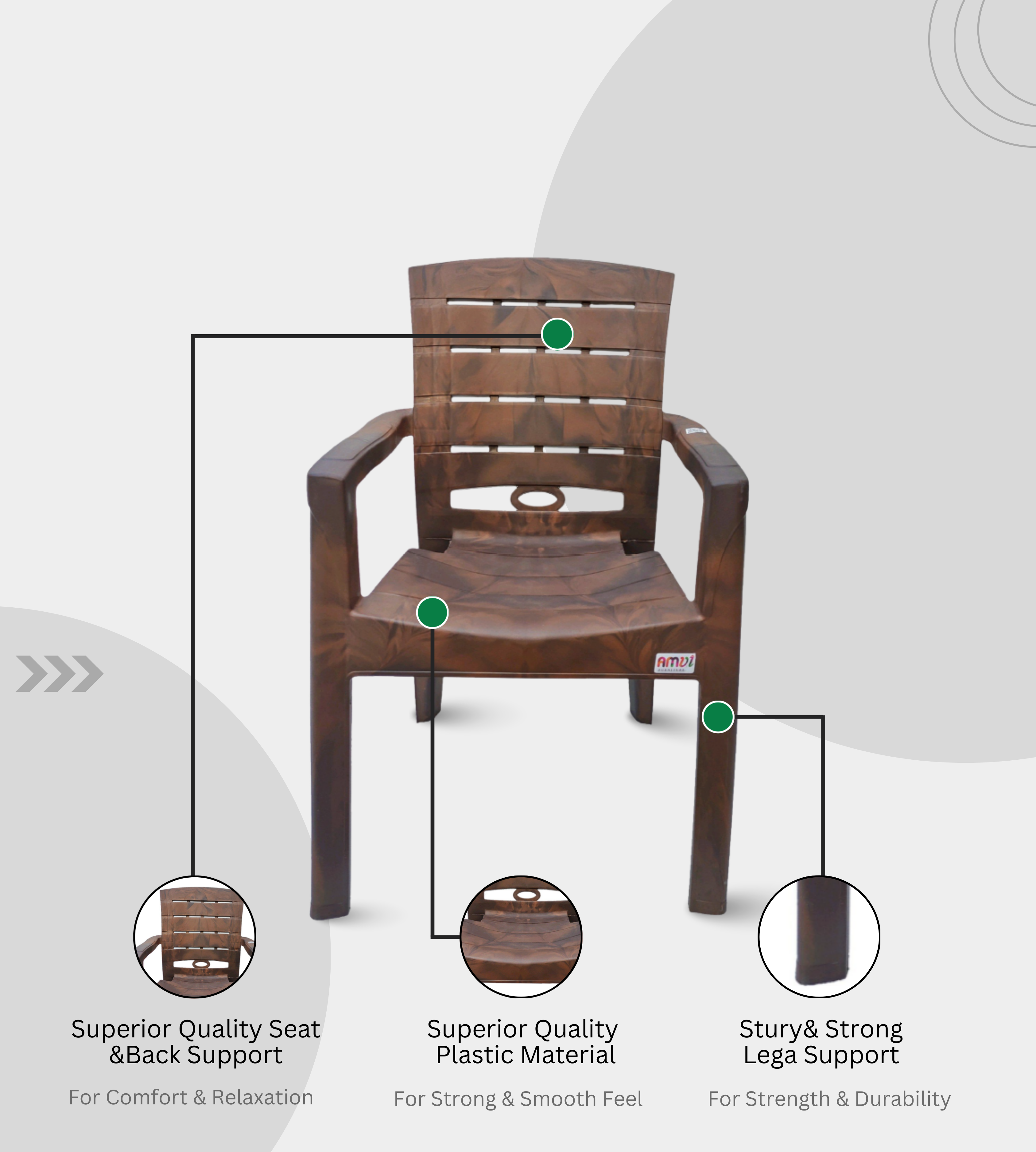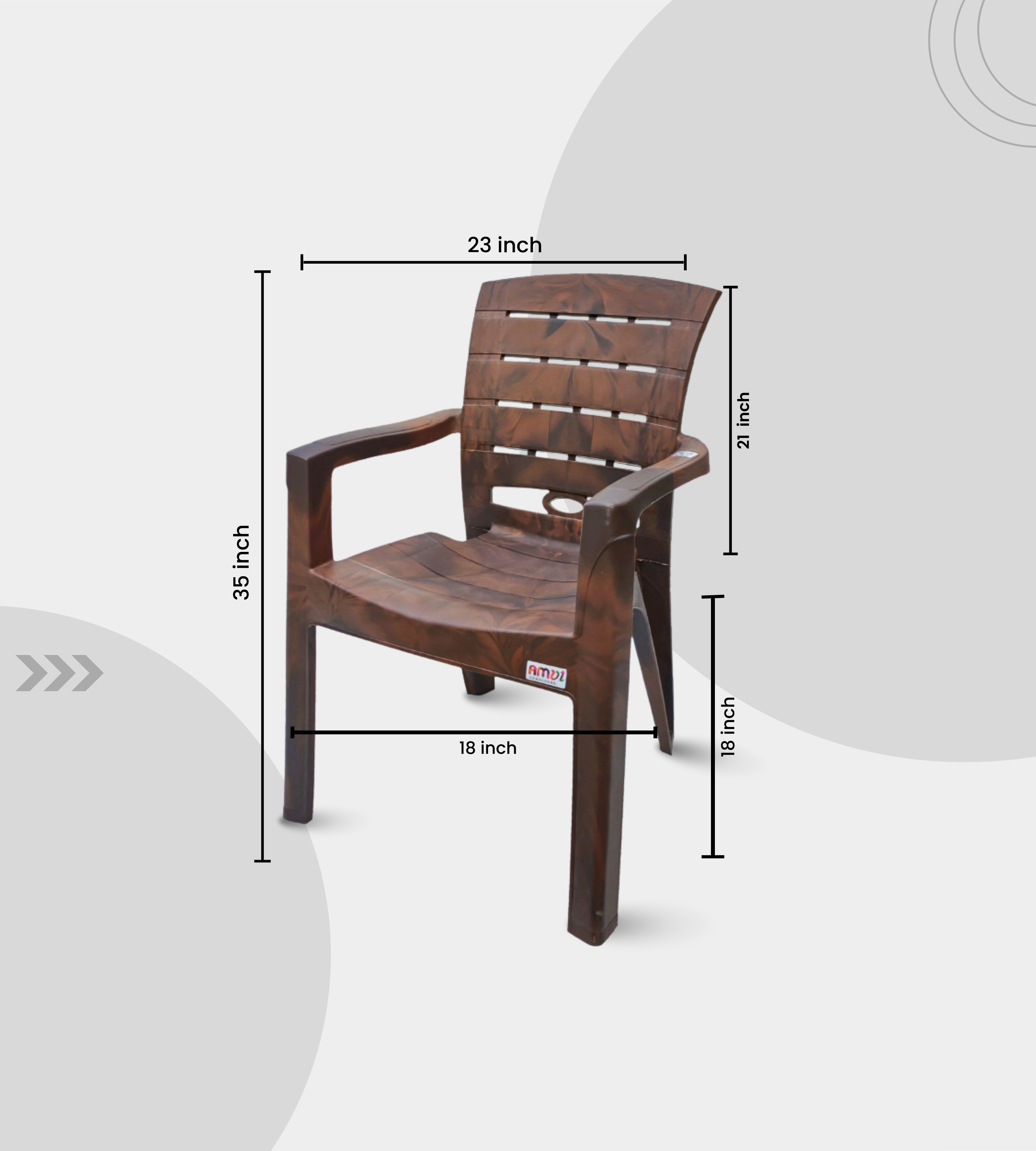 The TITAN (AMUL) Chair is a premium heavy-duty plastic armchair built for durability and elegance. Crafted in feather brown finish, it features a 35-inch height, 23-inch seat width, and a 21-inch supportive backrest for superior comfort.