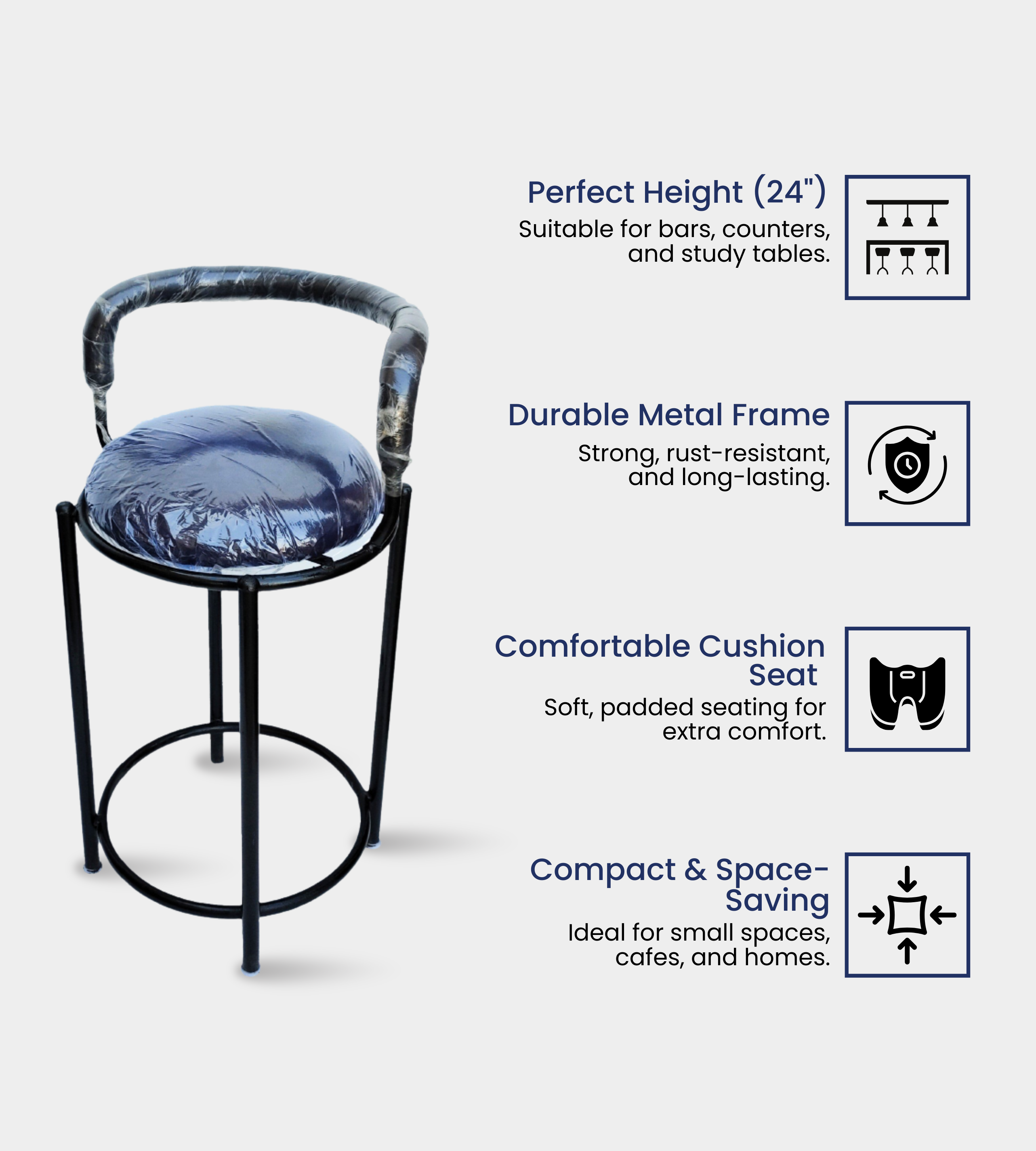 Standing 24 inches high, it is ideal for study desks, bar counters, and multipurpose spaces. Its compact design makes it easy to fit into classrooms, libraries, and waiting areas.