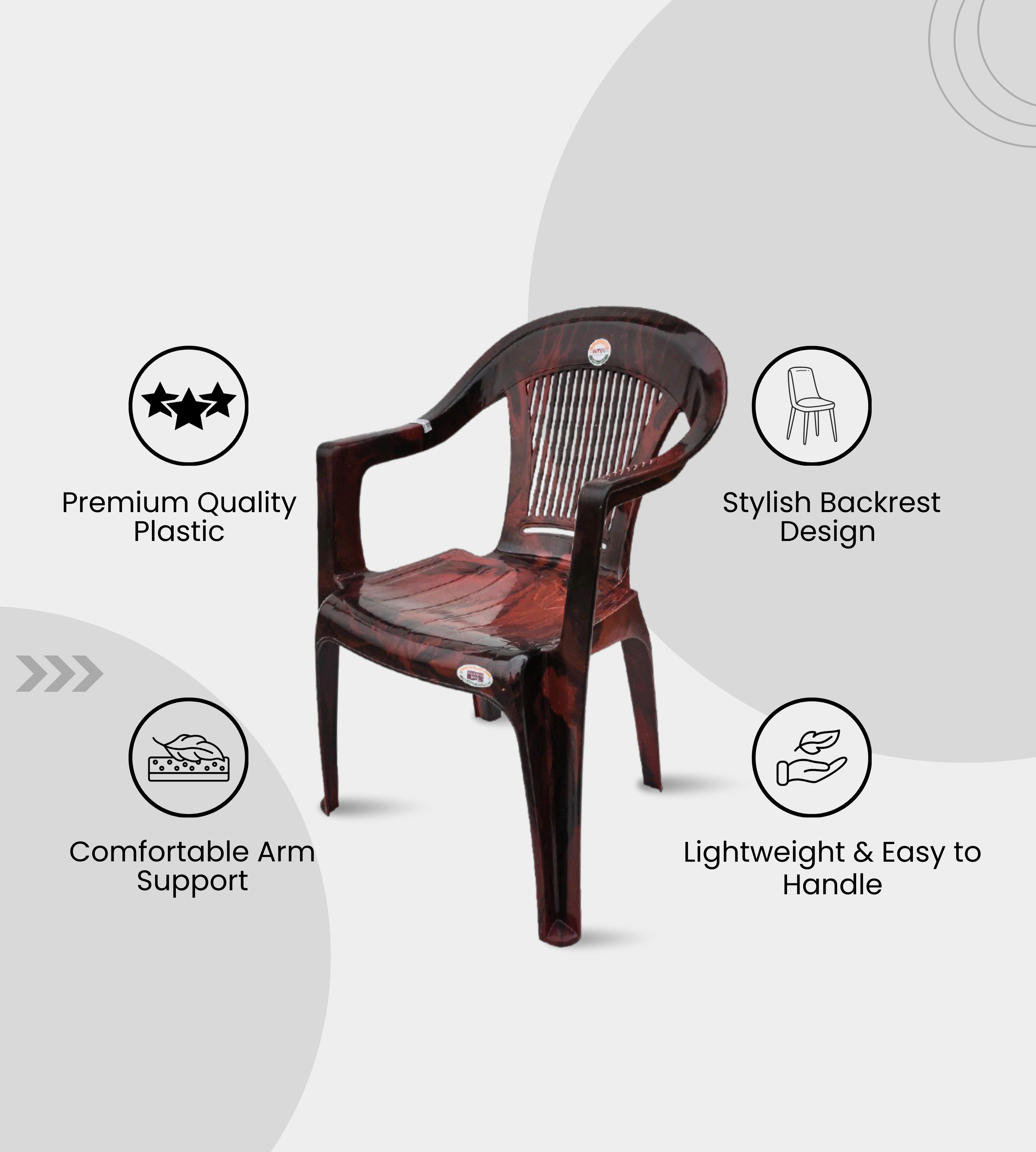 The Zigma (Amul) is a stylish and durable plastic armchair designed for multipurpose use. Made from heavy-duty plastic, it offers strength, comfort, and reliability for daily seating needs.