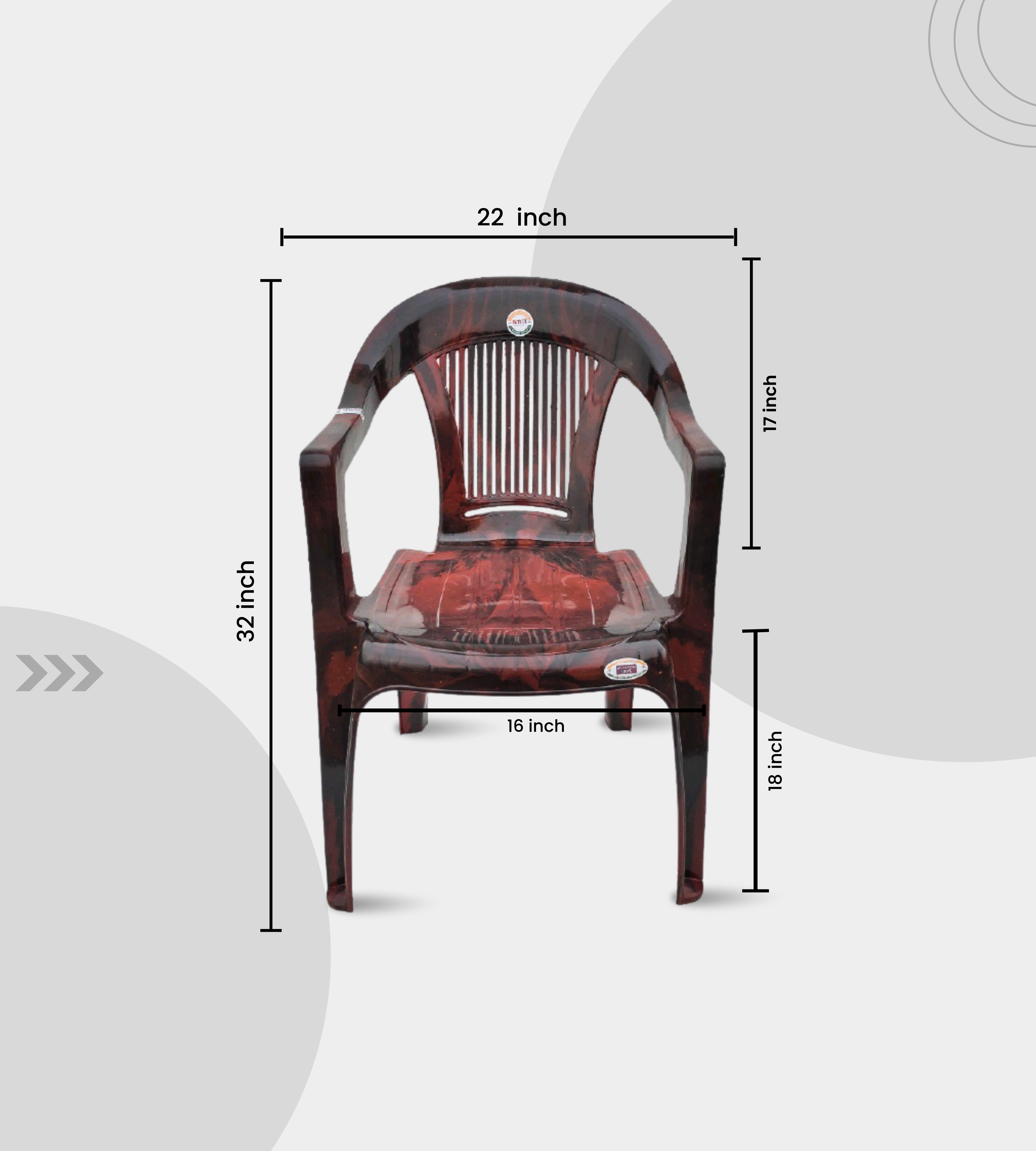 With a total height of 32 inches and a comfortable 18-inch seat height, this chair provides ergonomic support. Its lightweight and stackable design makes it easy to move and store, while its arm support adds extra comfort.