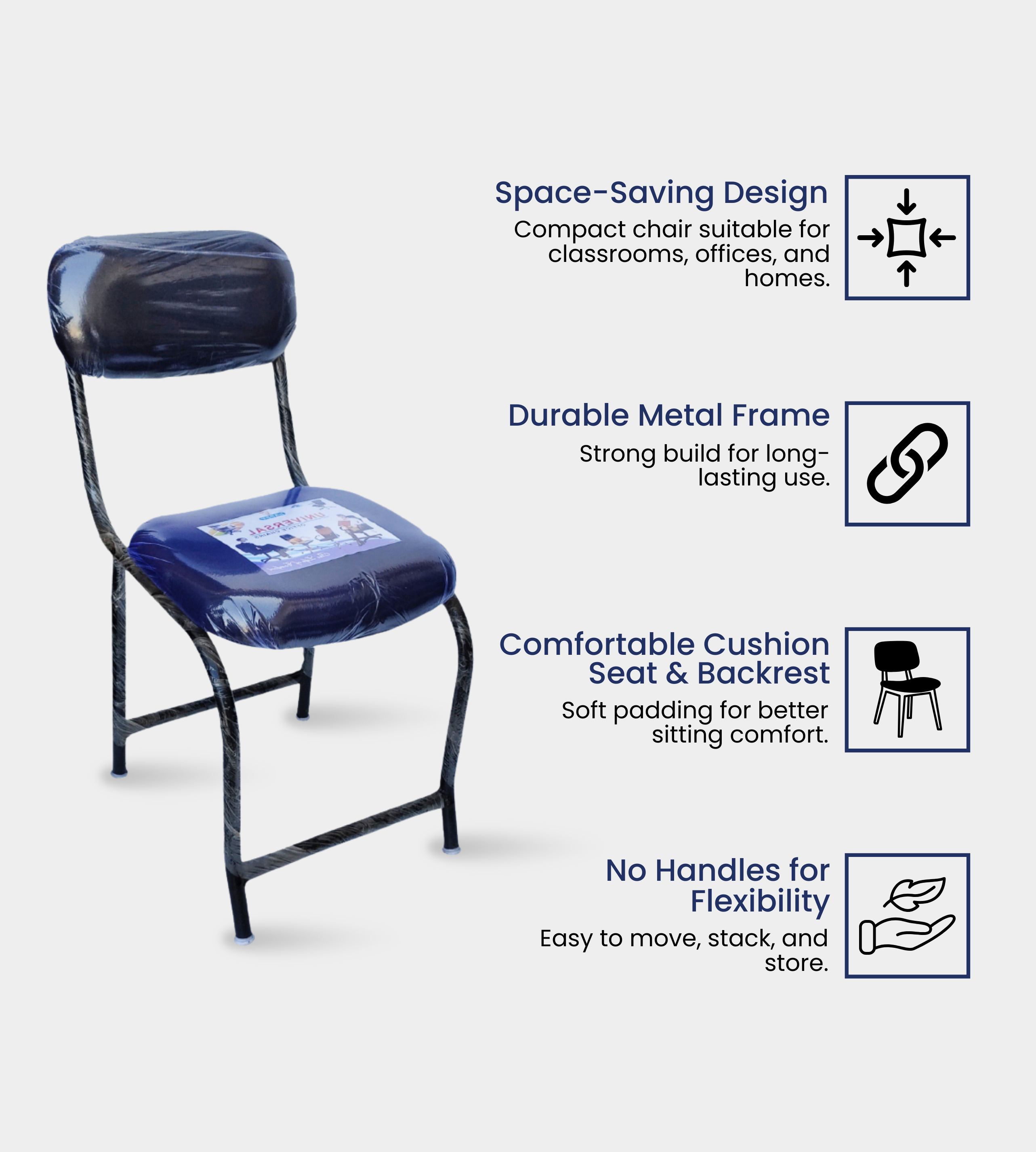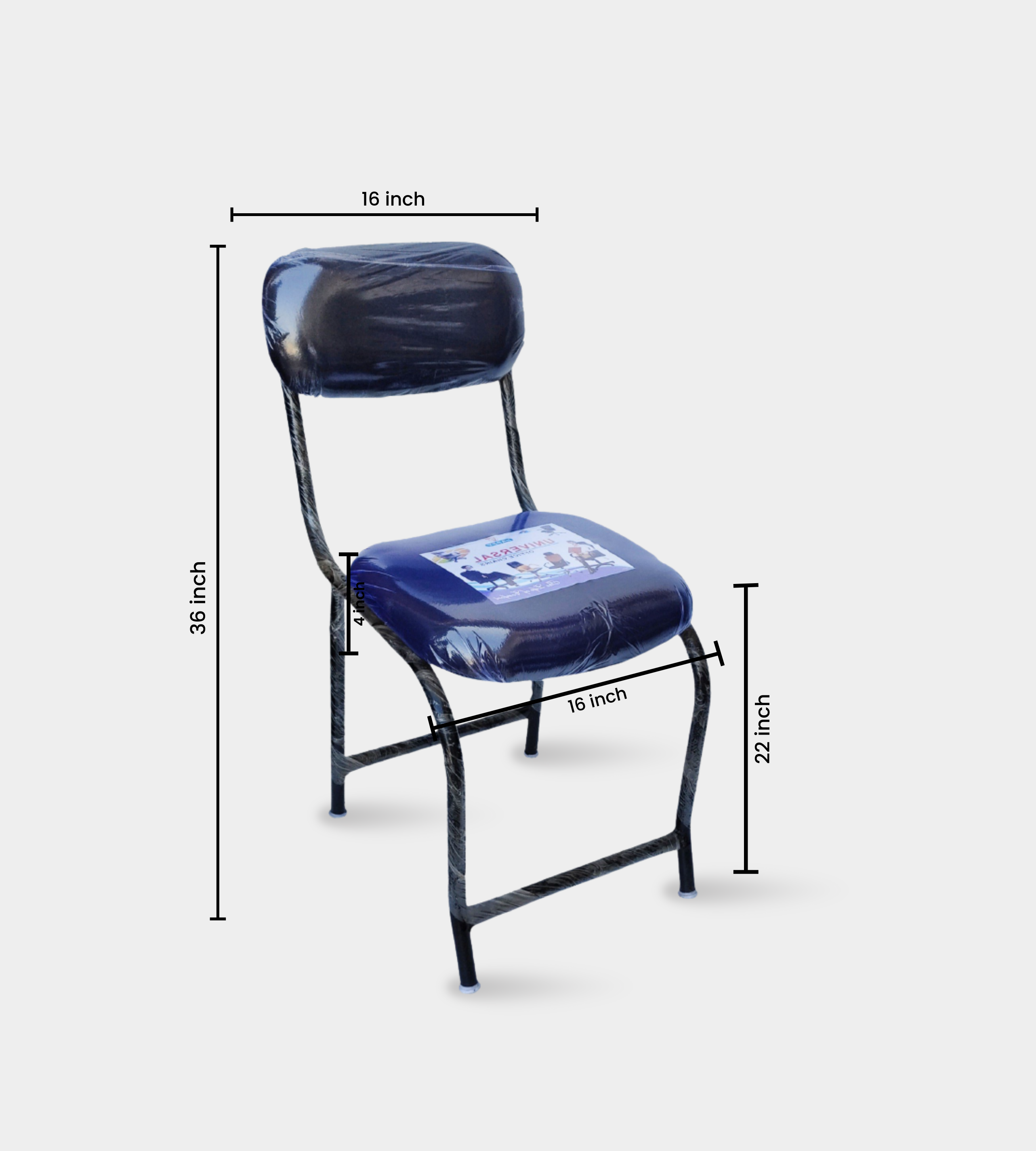 Constructed with a sturdy round pipe frame (16 × 8 in) and a cushioned cloth seat and backrest, it offers comfort and long-lasting performance. Its compact design makes it suitable for classrooms, waiting areas, and multipurpose seating.